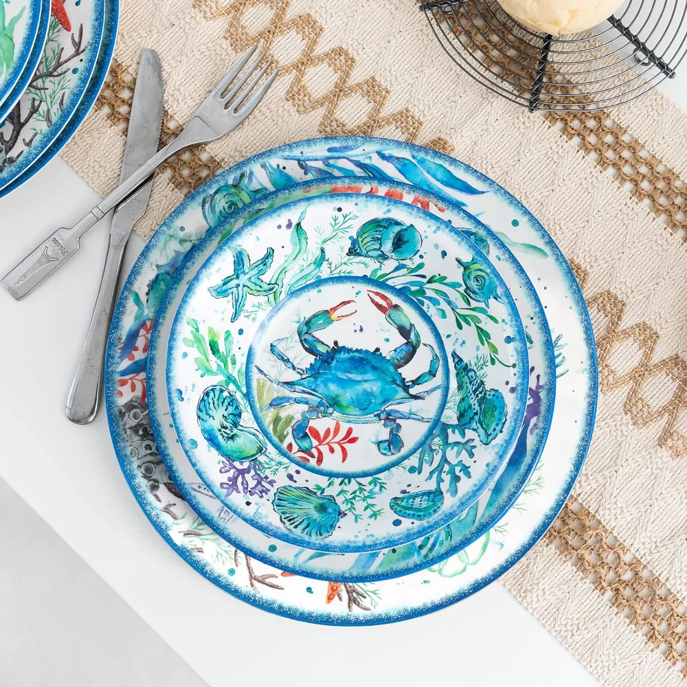- DURABLE & HIGH QUALITY: This oceanic melamine dinnerware set made of high quality 100% durable heavyweight melamine, BPA free and break-resistant, heavier than most melamine dishes