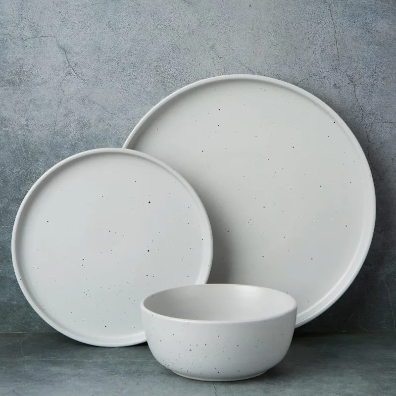 - 【SPECKLED DESIGN】Modern plates and bowls set feature amazing spotted designs to make each plate and bowl fun and unique. Minimalist style with classic matte glaze can blend in with any kitchen and dining table.