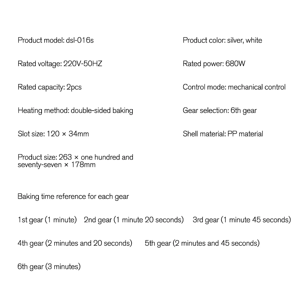 Bread Slot Quantity: 2 slices