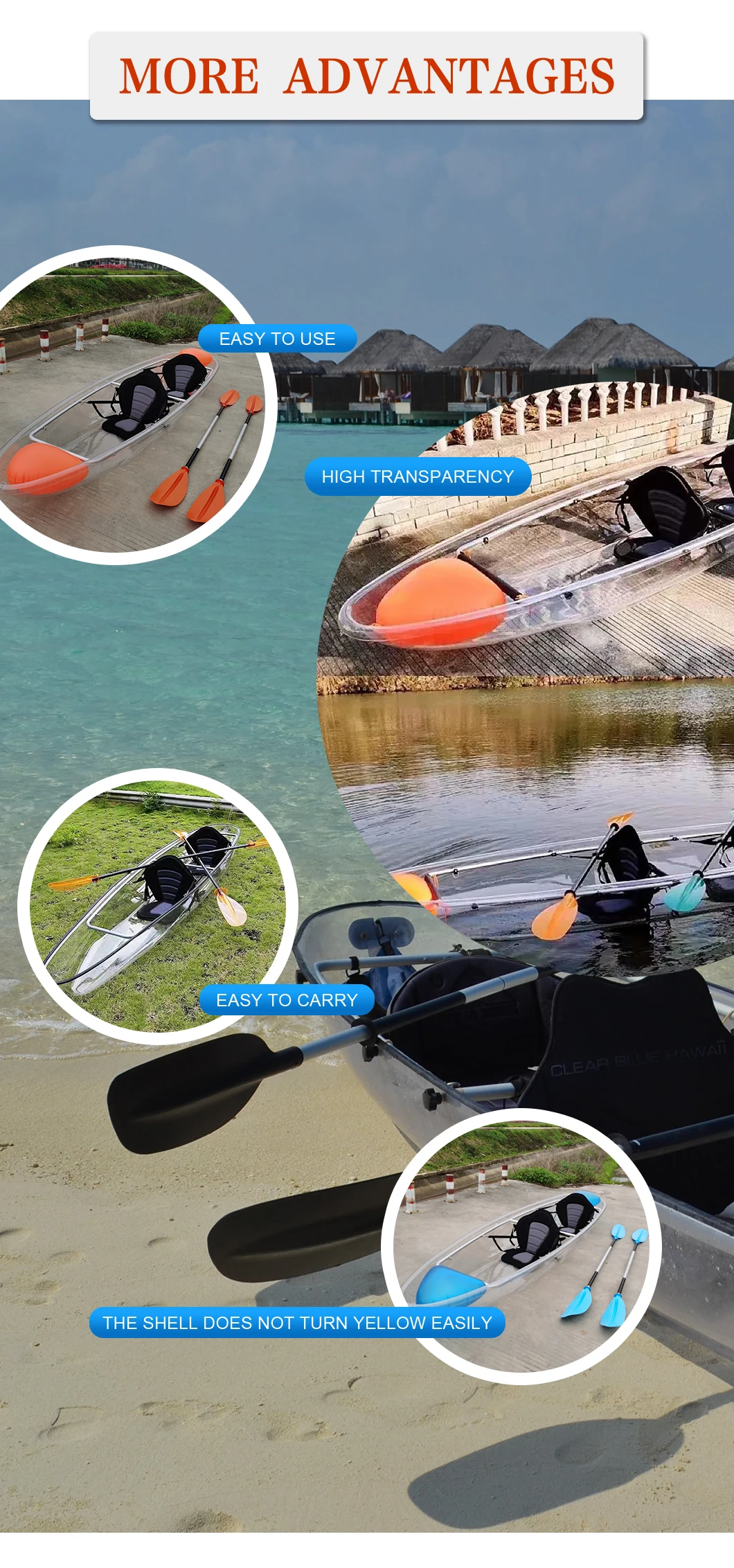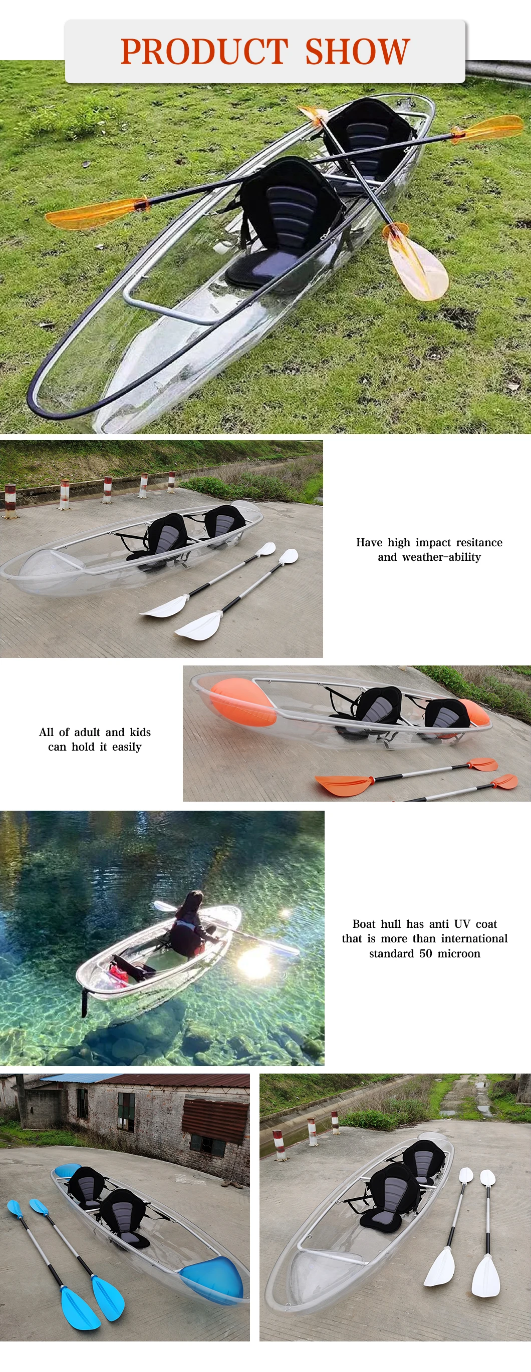 2023 Popular PC transparent boat canoe double kayak multi-person water canoe transparent boat clear kayak 2 person