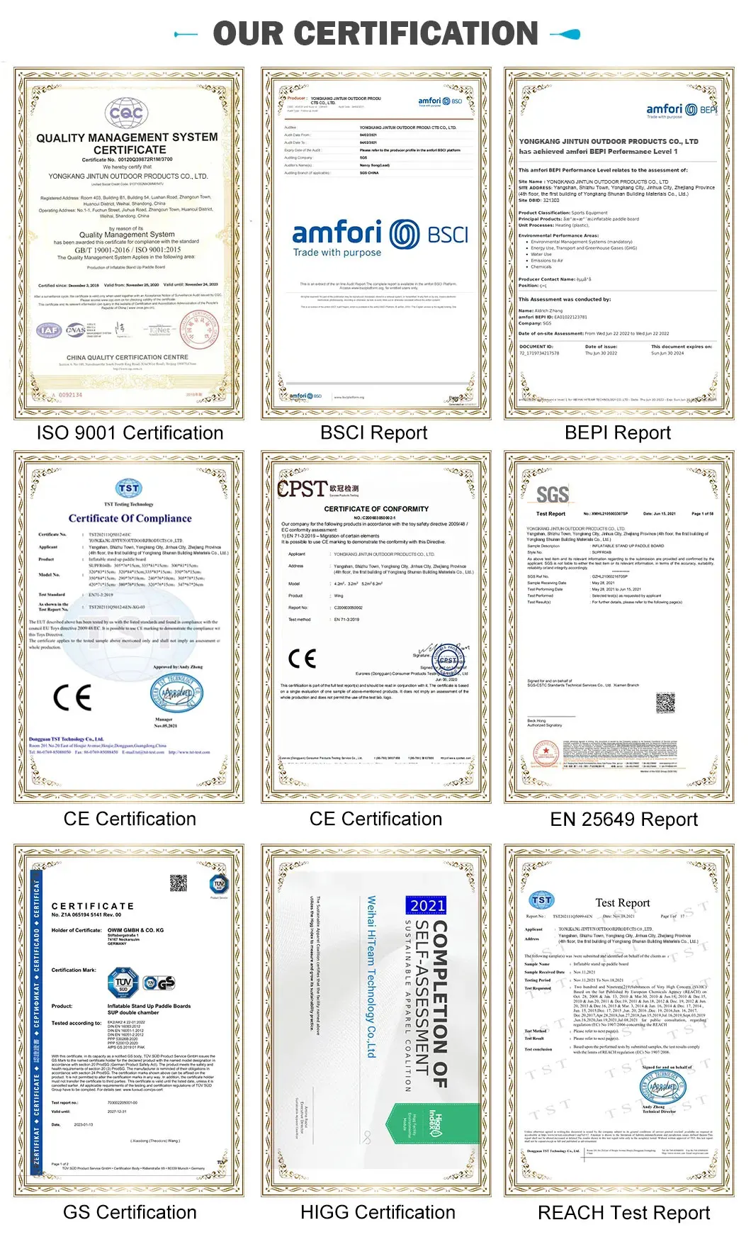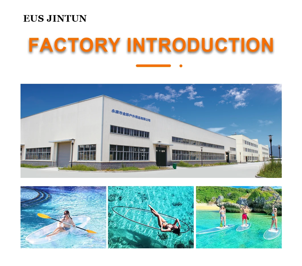 Yongkang Jintun Outdoor Products Co., Ltd. was established in 2015, is an independent design, sales, production in one of the innovative enterprises. The company mainly engaged in inflatable vertical paddle board, transparent paddle board, inflatable boat, transparent boat, inflatable gymnastics mat, outdoor tent, outdoor heated swimming pool and so on. We have excellent product research and development team, design team, sales team, can fully meet customer needs, our mission is to give customers the best quality, the most favorable price, the best OEM export service. Through the efforts of our team, our products are exported to more than 80 countries such as the United States, Russia, Canada, Australia and the United Kingdom. We are very pleased to start working with you and look forward to the future. Thank you! - The most sincere EUS JINTUN Team