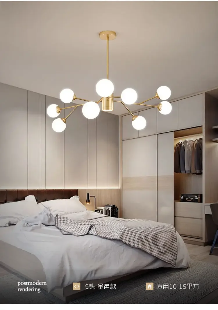 2024 Minimalist Modern Light Luxury LED Chandelier Glass Ball Lampshade Bedroom Living Room Dining Table Decoration Chandelier
