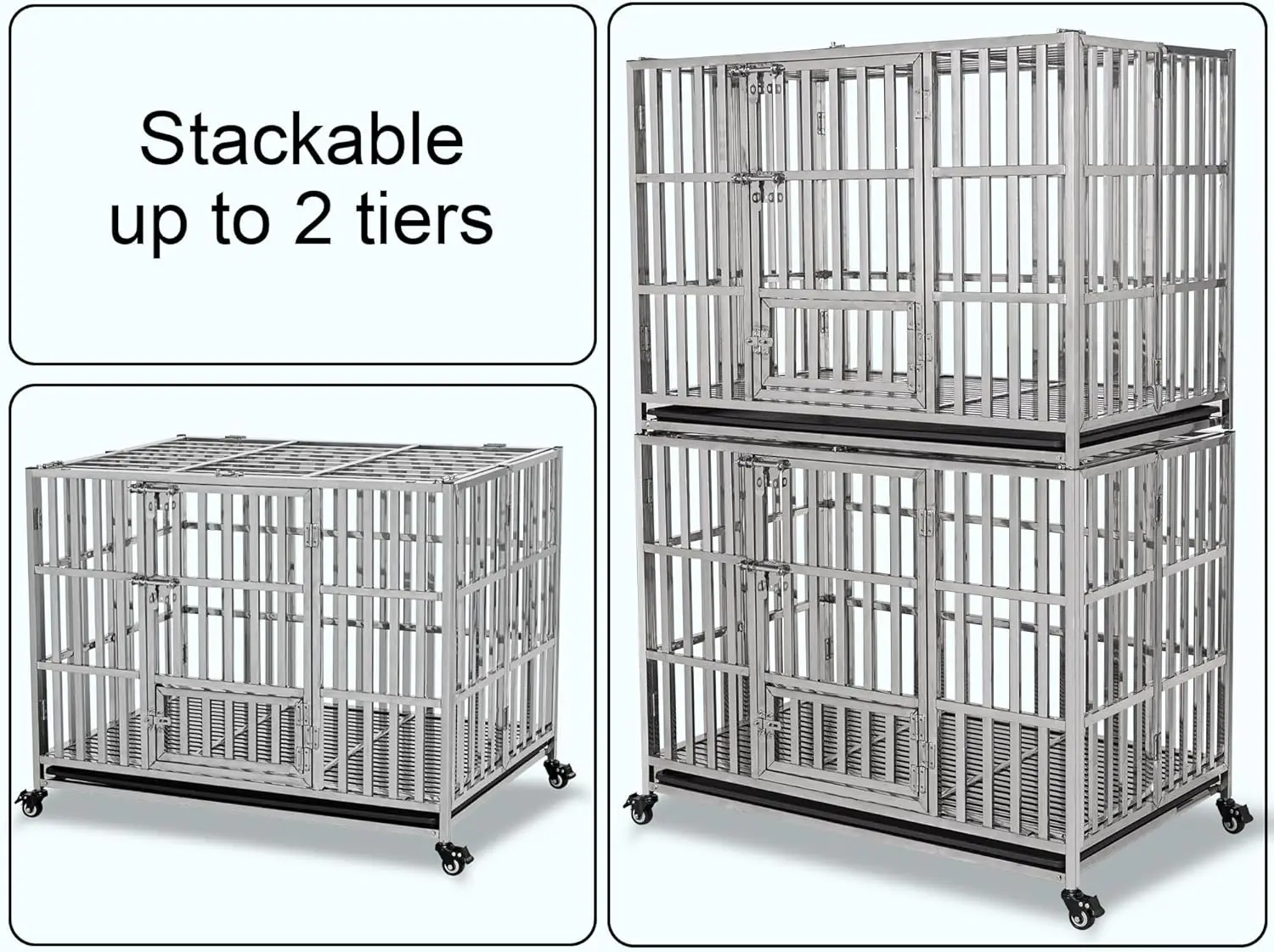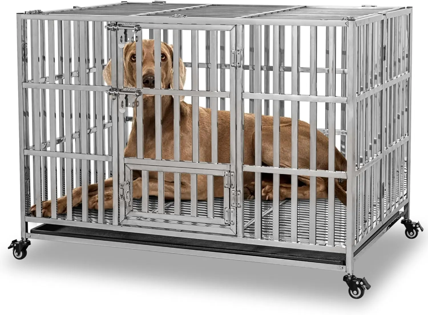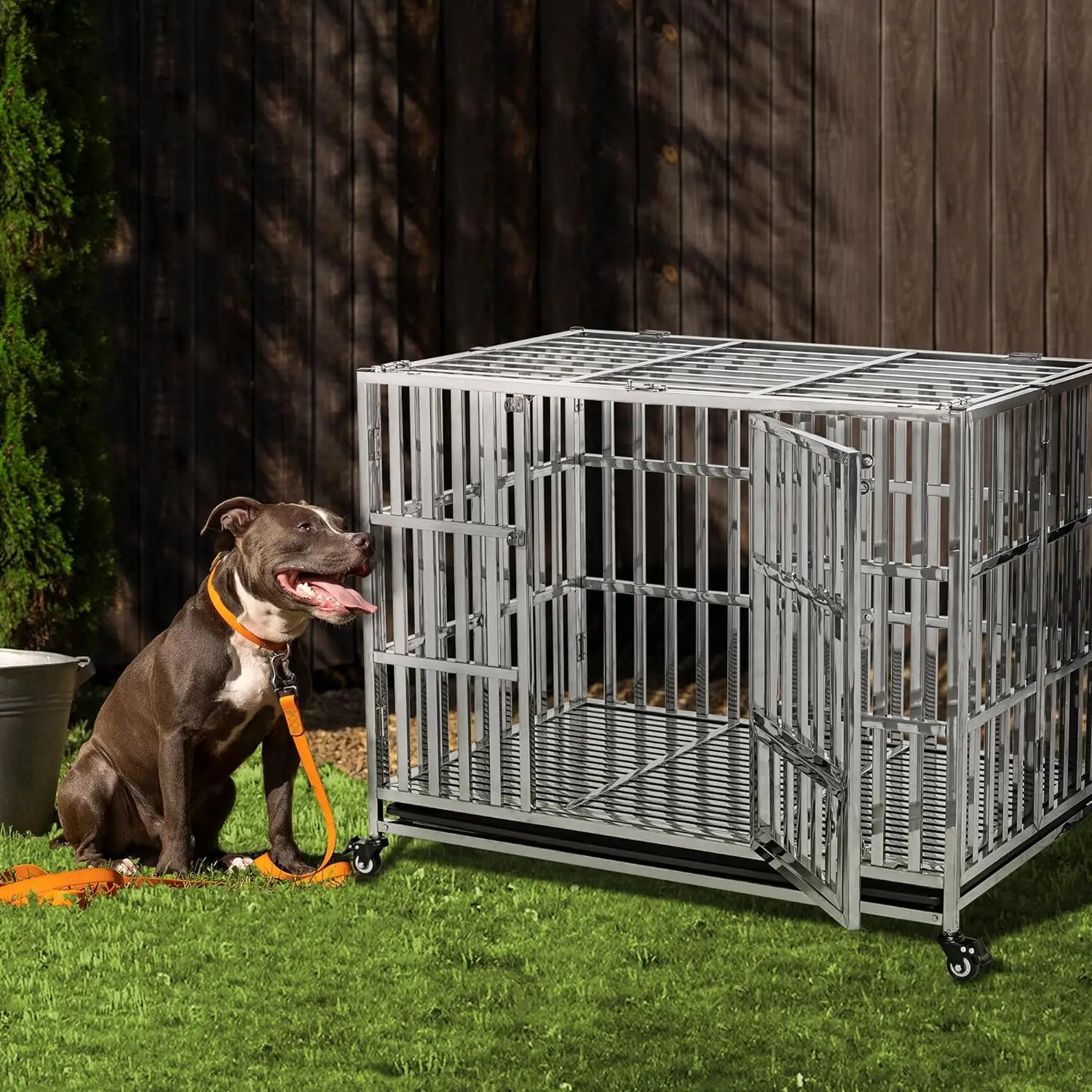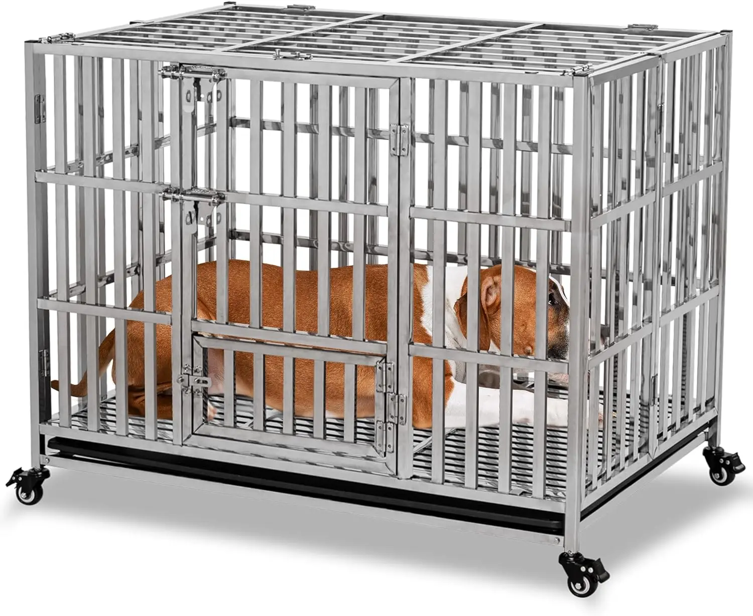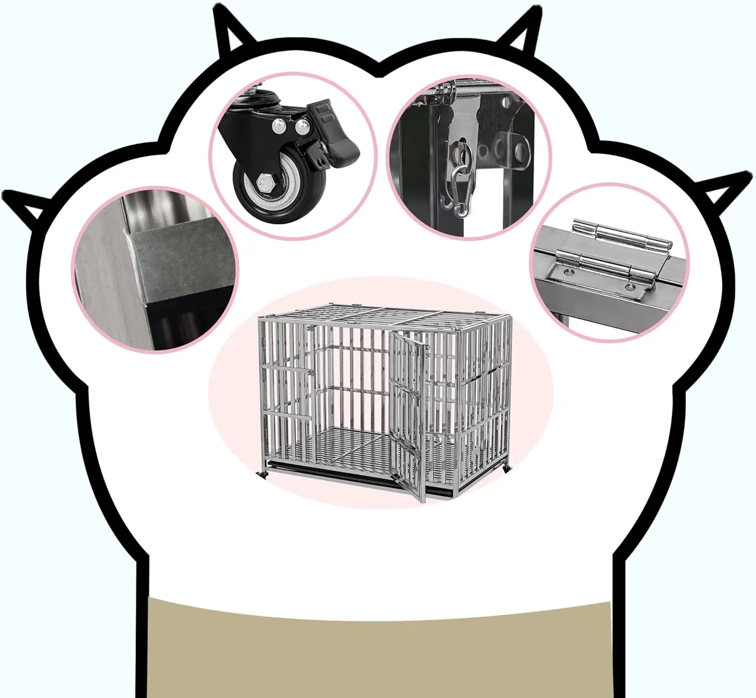 - 【Safety and Health】: Made of durable stainless steel and welded for added strength, our heavy duty dog crate is safe and non-hazardous for your pet's health and well-being. Plus, it withstands corrosion, rust, and scratches, making it perfect for indoor and outdoor use.