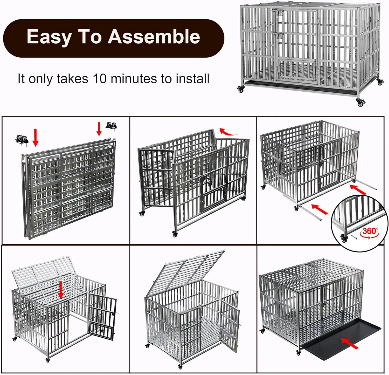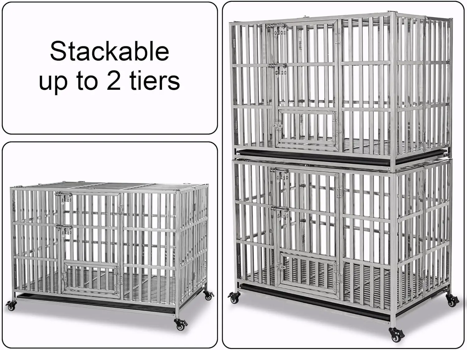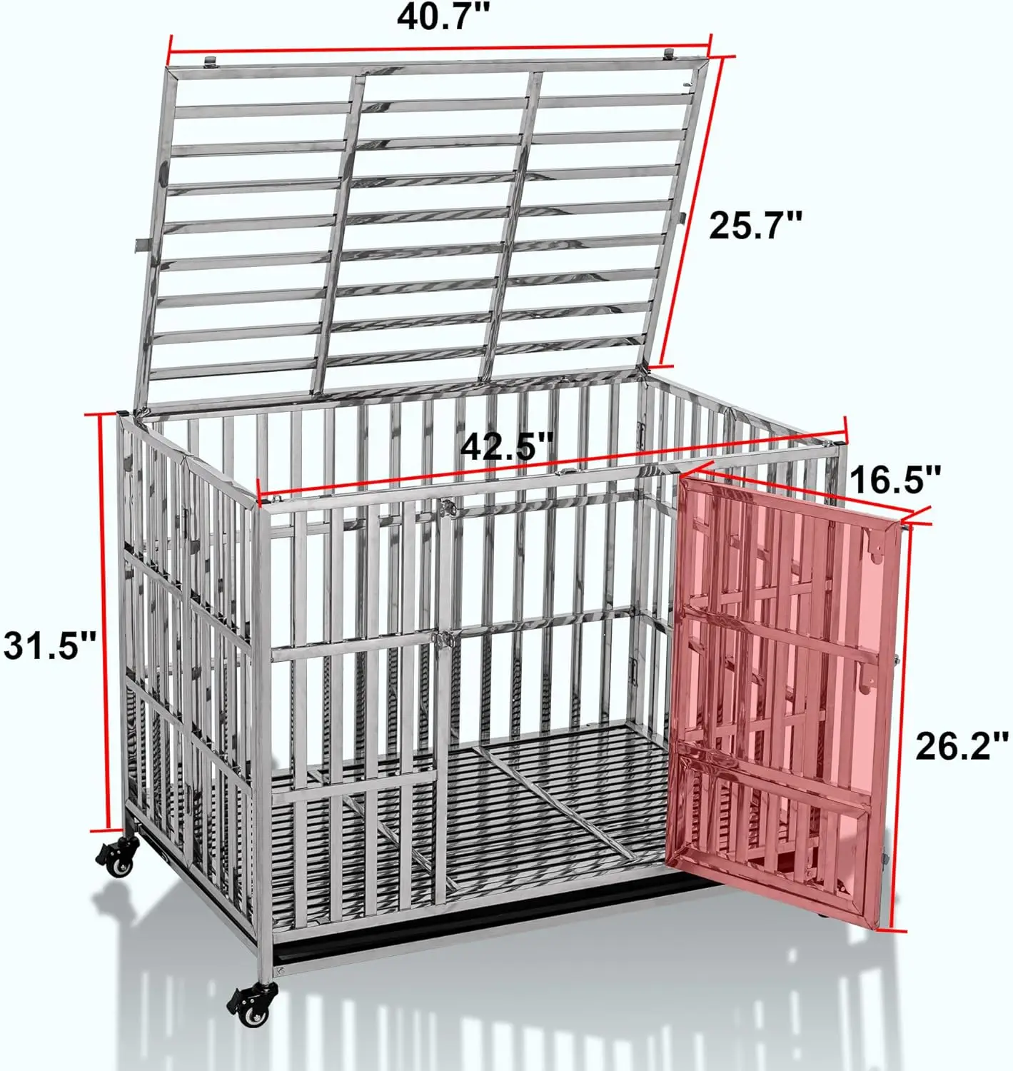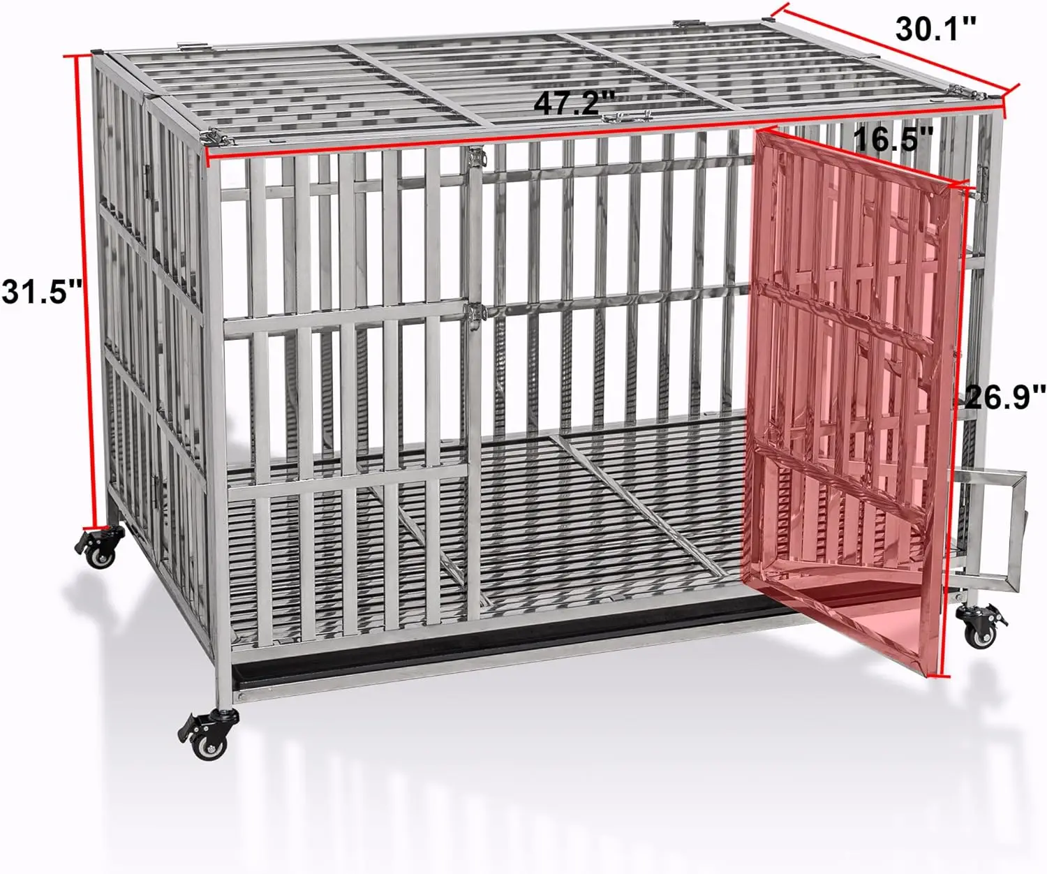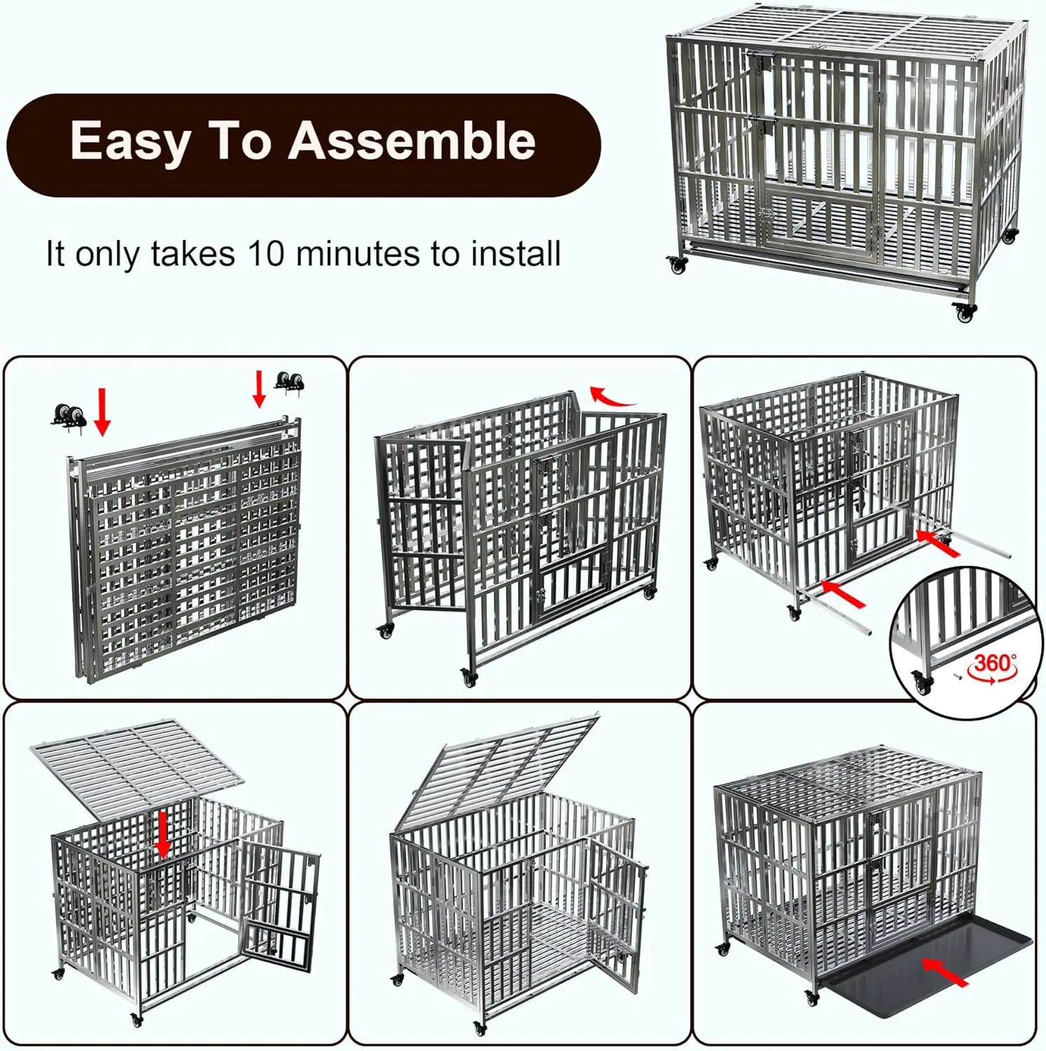 - 【Safety and Health】: Made of durable stainless steel and welded for added strength, our heavy duty dog crate is safe and non-hazardous for your pet's health and well-being. Plus, it withstands corrosion, rust, and scratches, making it perfect for indoor and outdoor use.