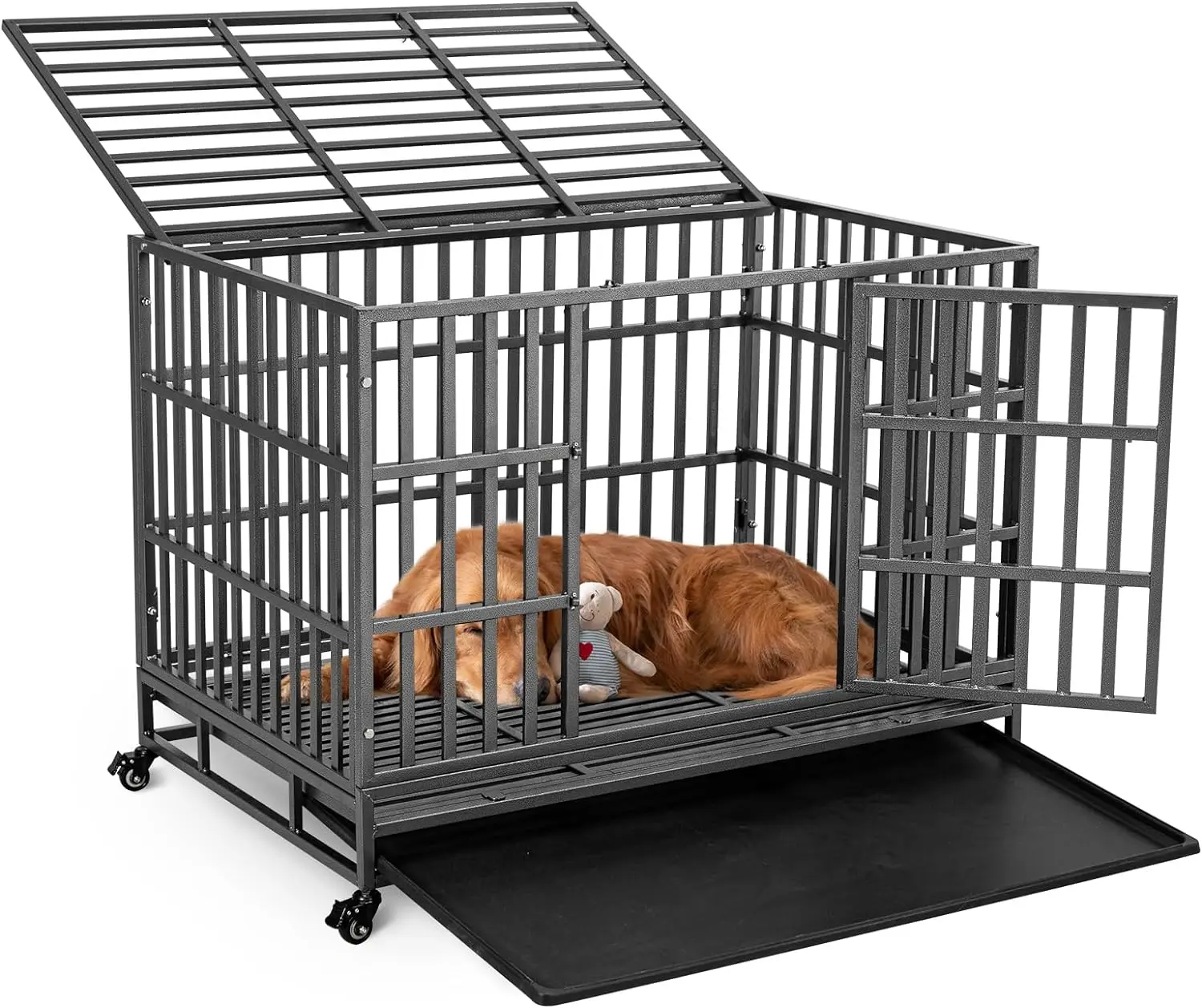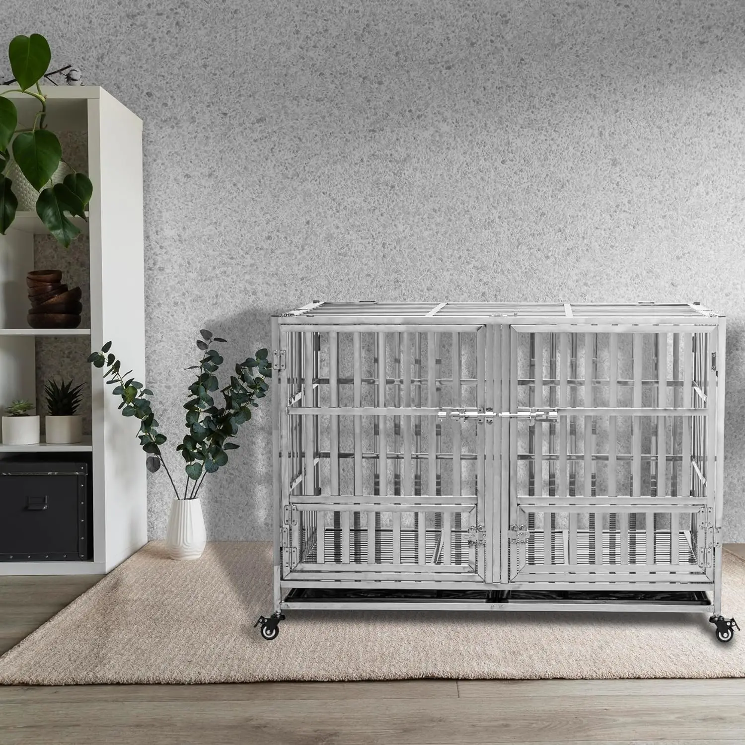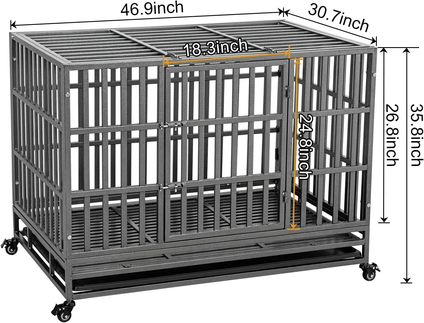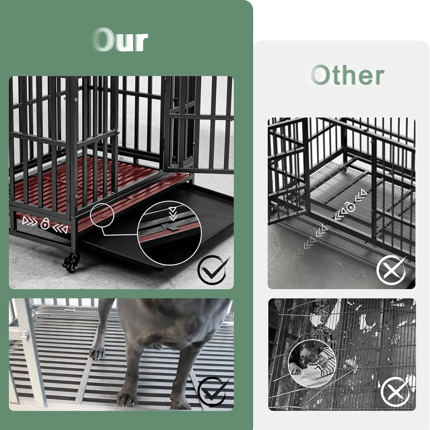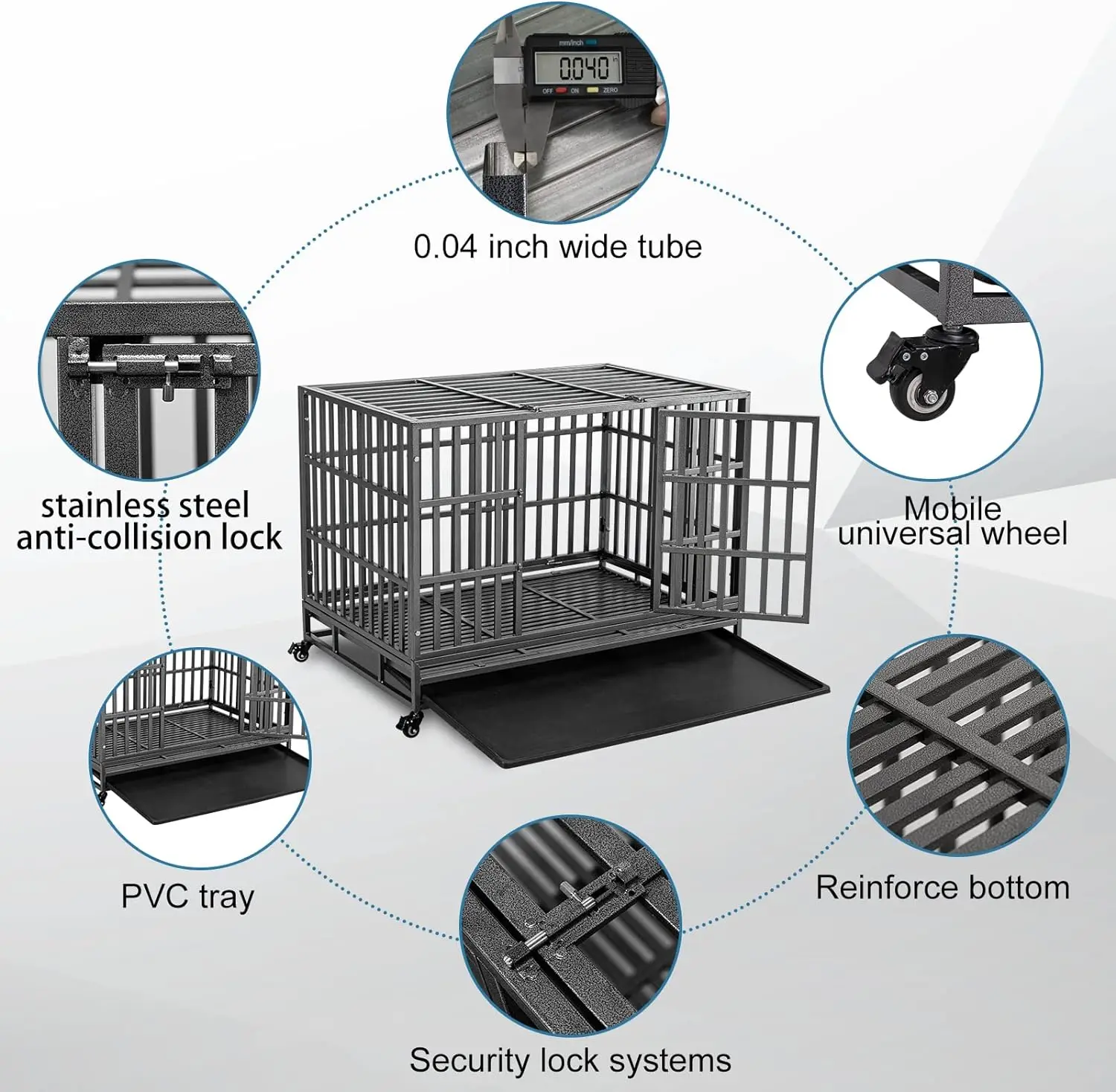 - 【Safety and Health】: Made of durable stainless steel and welded for added strength, our heavy duty dog crate is safe and non-hazardous for your pet's health and well-being. Plus, it withstands corrosion, rust, and scratches, making it perfect for indoor and outdoor use.