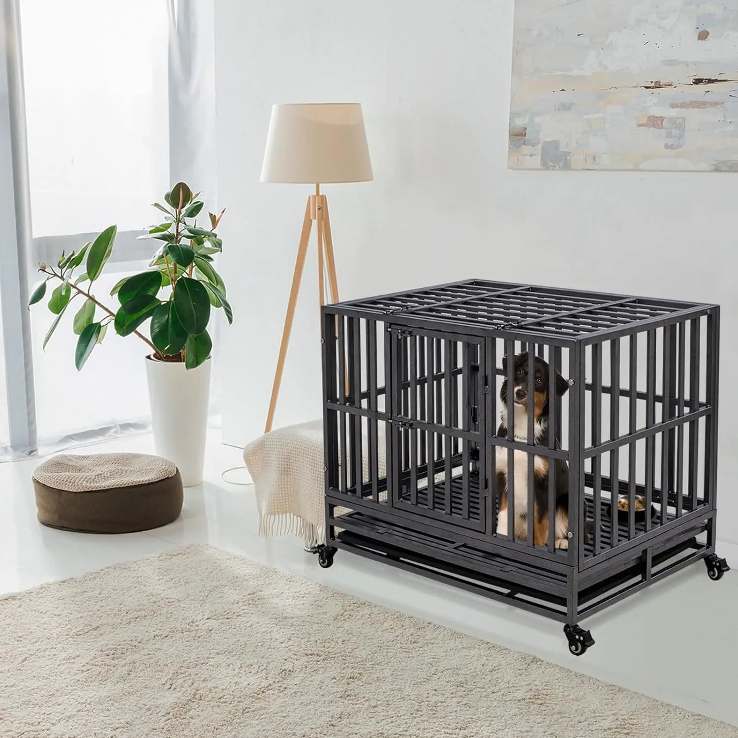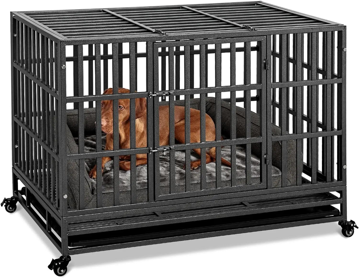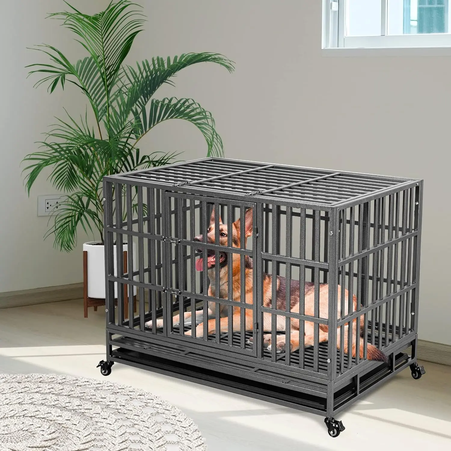 - 【Size 】With dimensions of 42.5"L X 27.63"W X 34.2"H, this metal dog crate is ideal for most medium and large dogs.