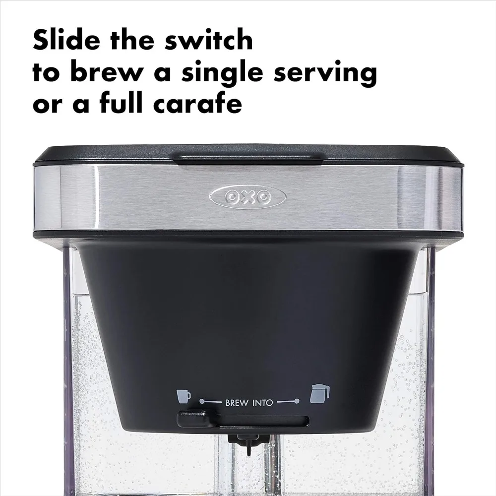 - Double-wall, vacuum-insulated thermal carafe with brew-through, pour-through carafe lid