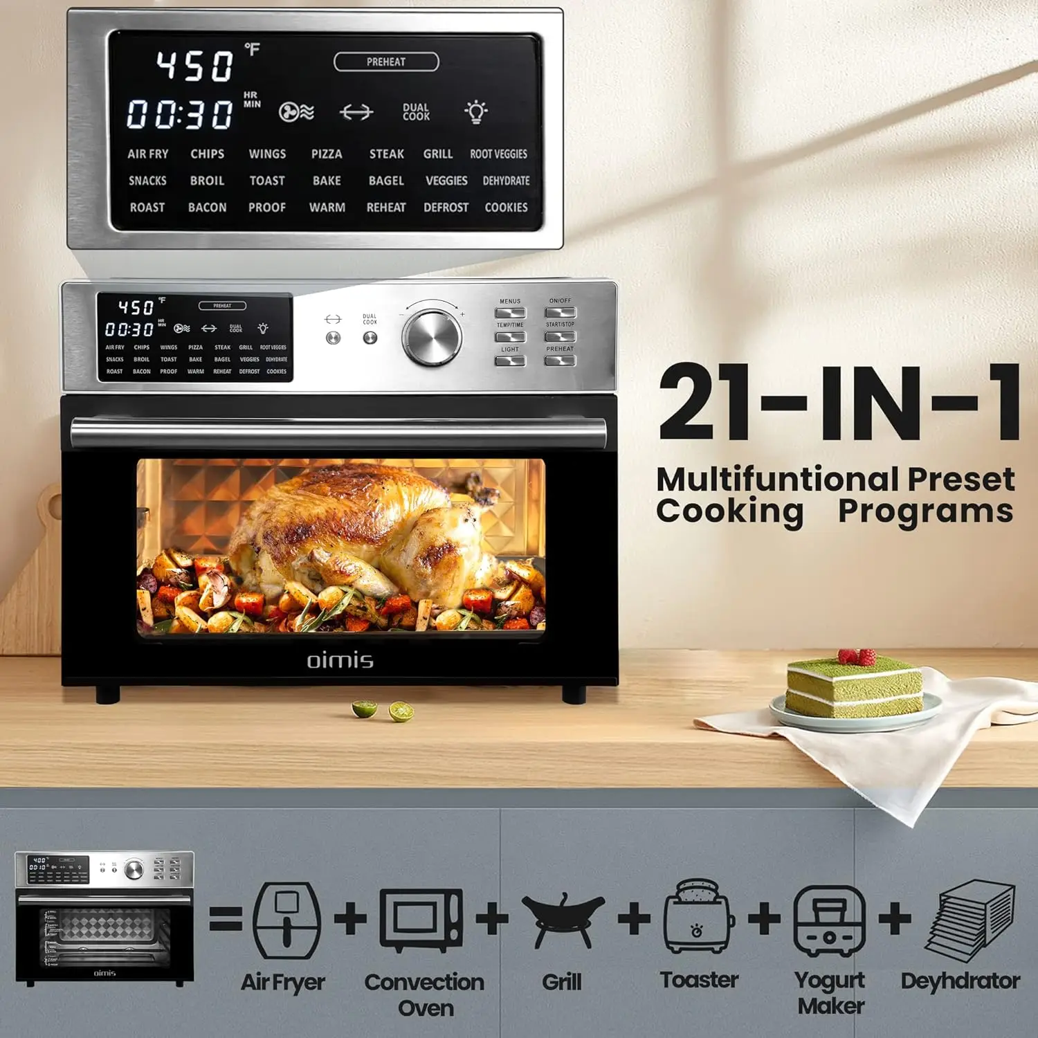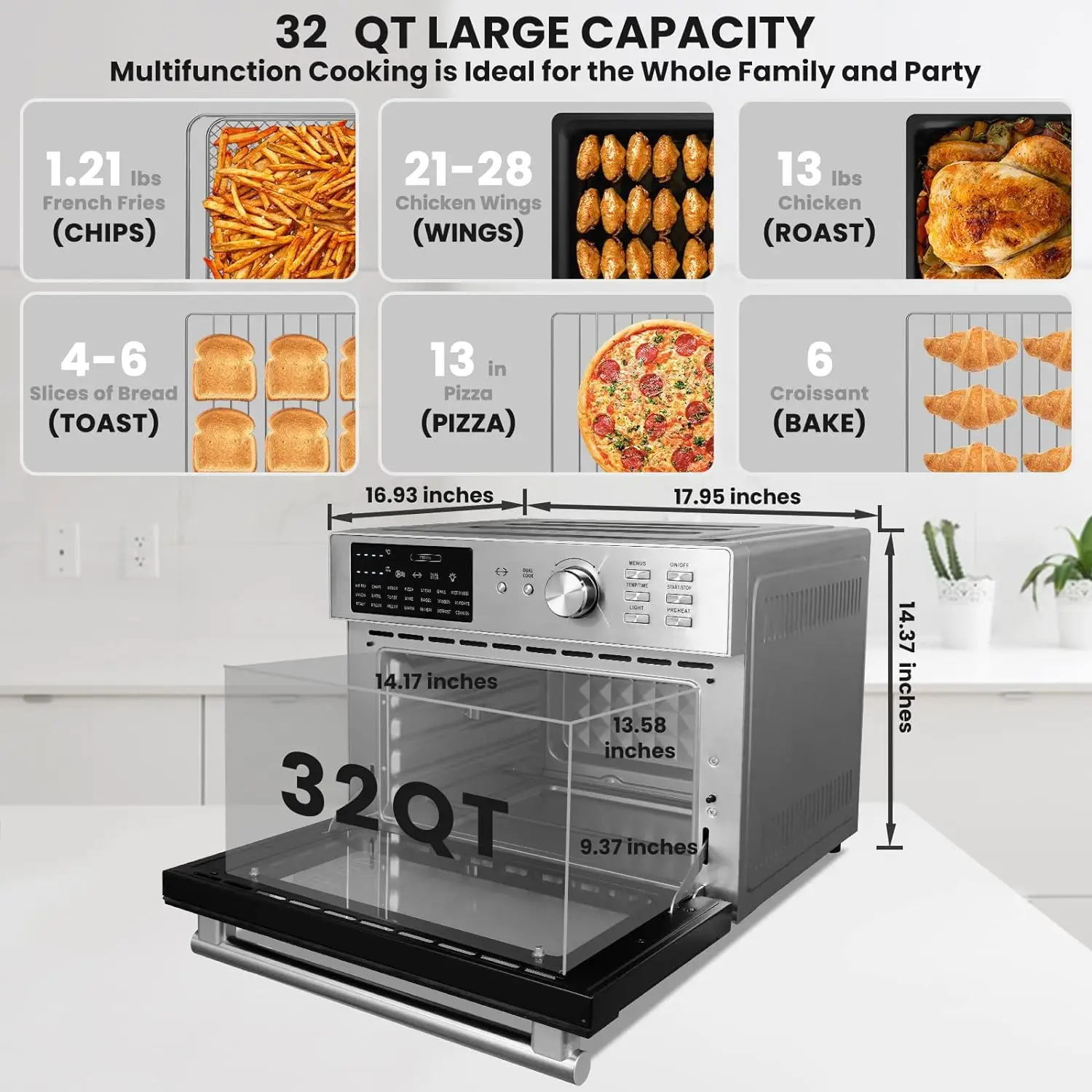 Air Fryer Rotisserie Toaster Oven,32QT X-Large Stainless Steel Combo 21 IN 1 Countertop Oven Dual Cook Patented Dual