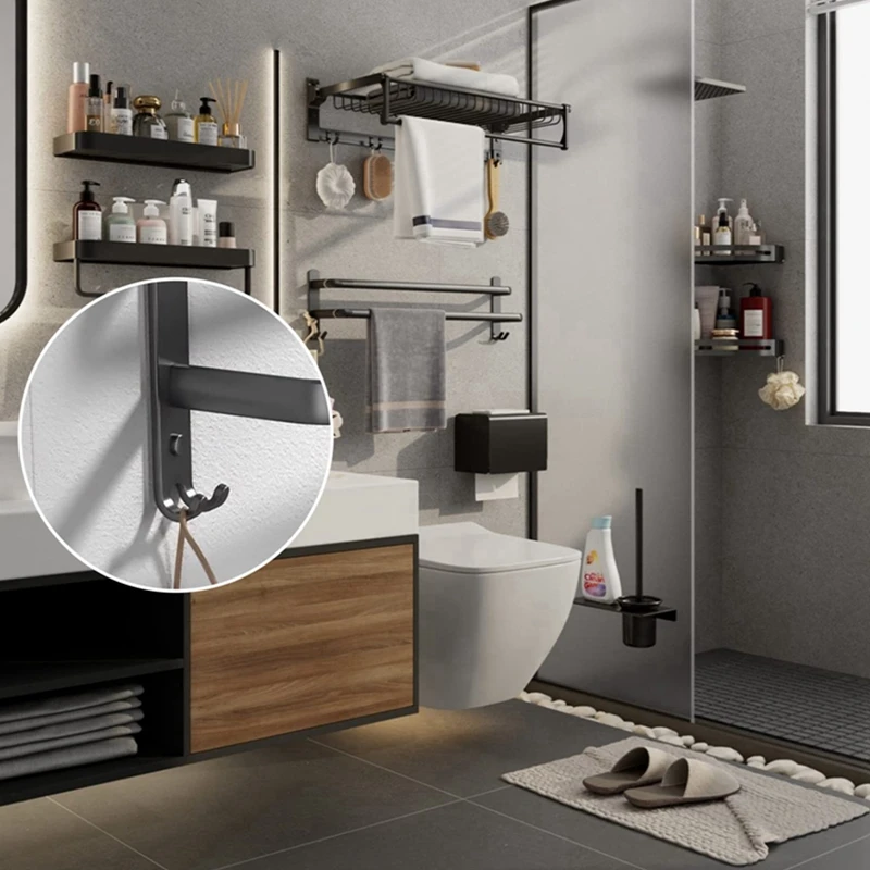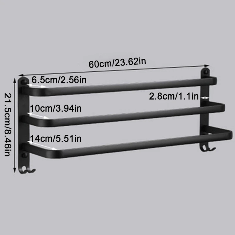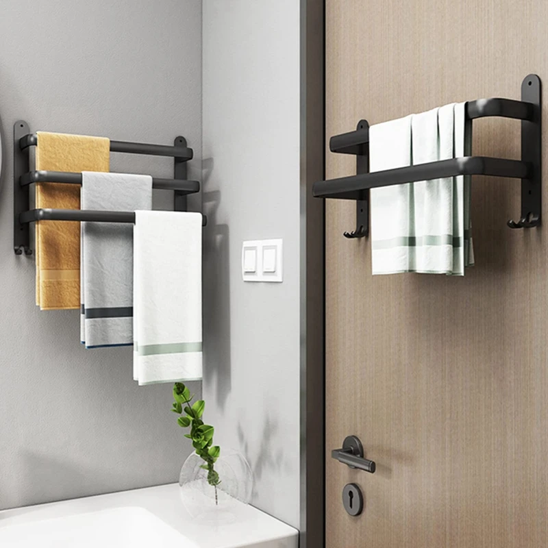 Aluminium Towel Rack 2/3 Ladders Storage Organizer With Hook Wall Mounted Space Saving Towel Hanger for Bathroom Kitchen Hotel