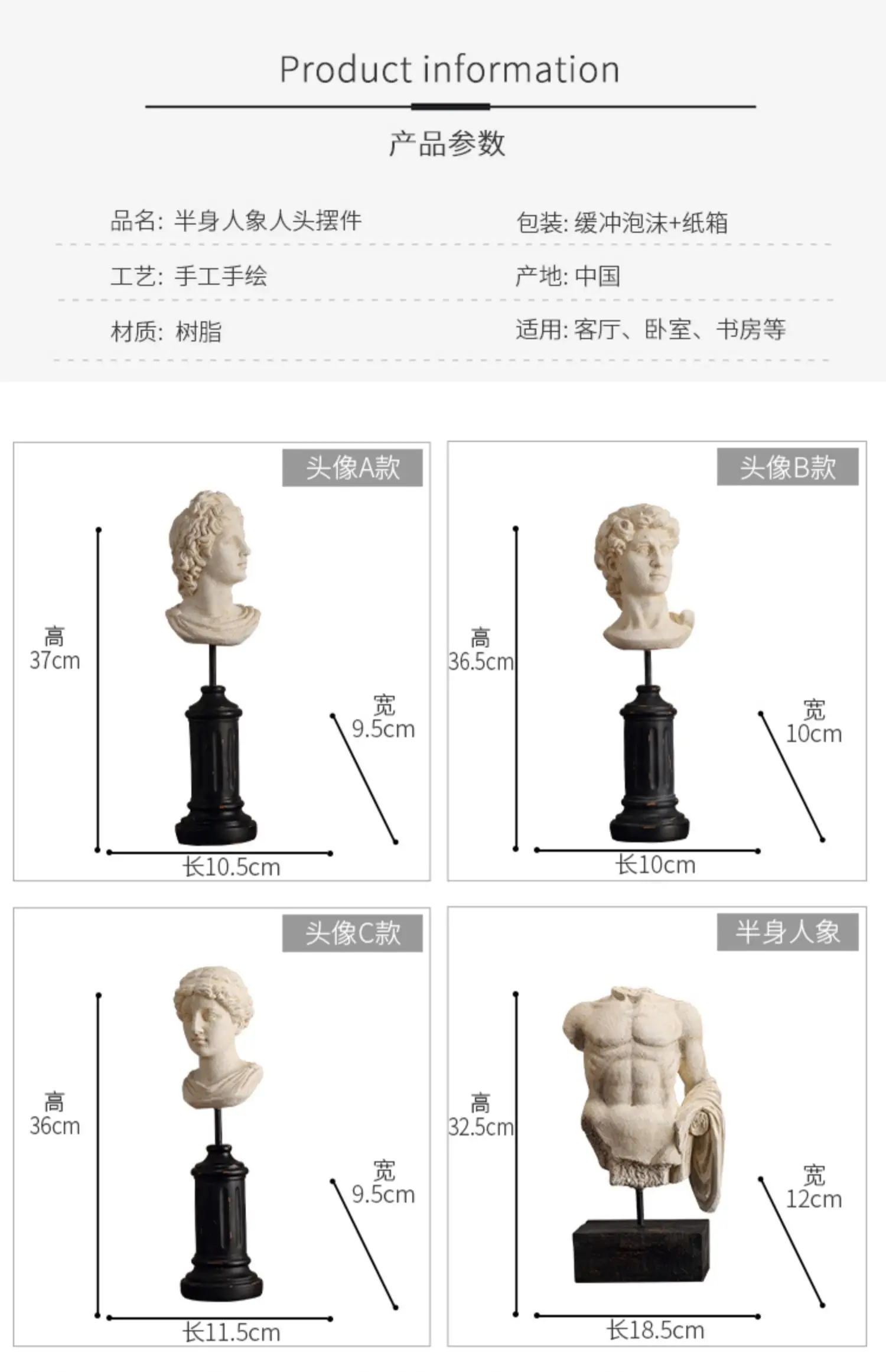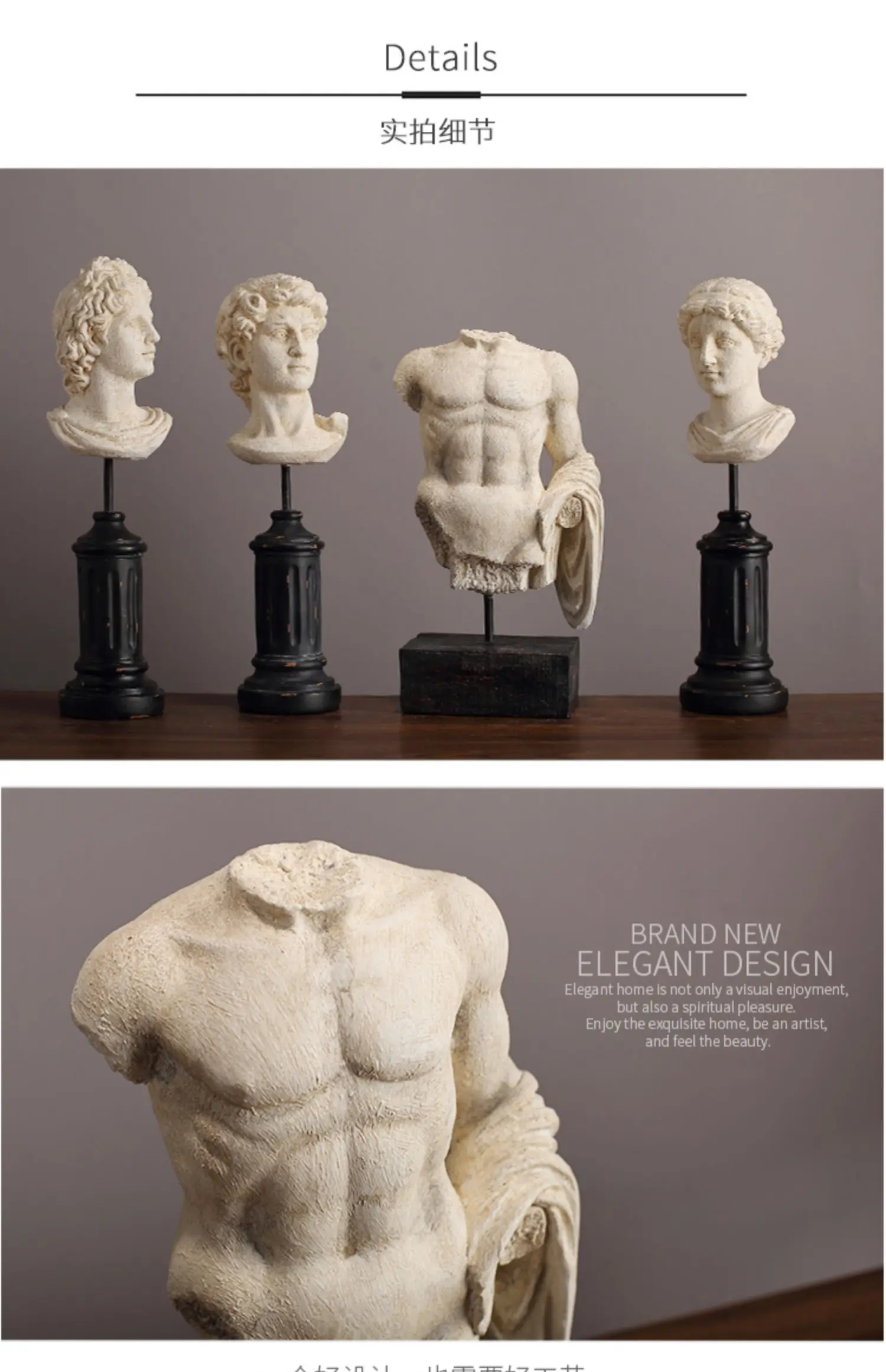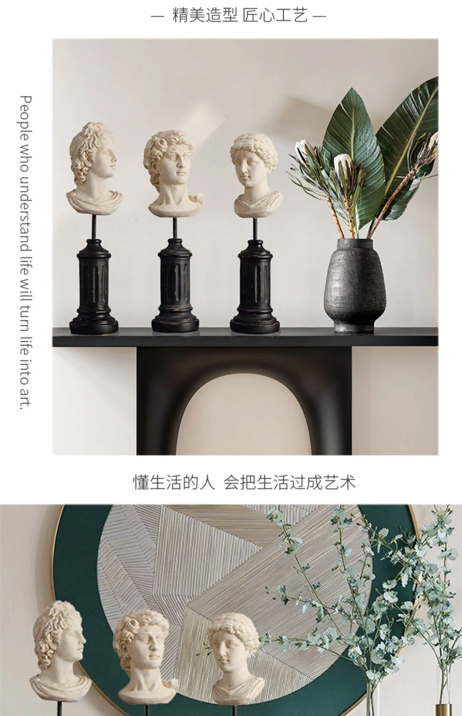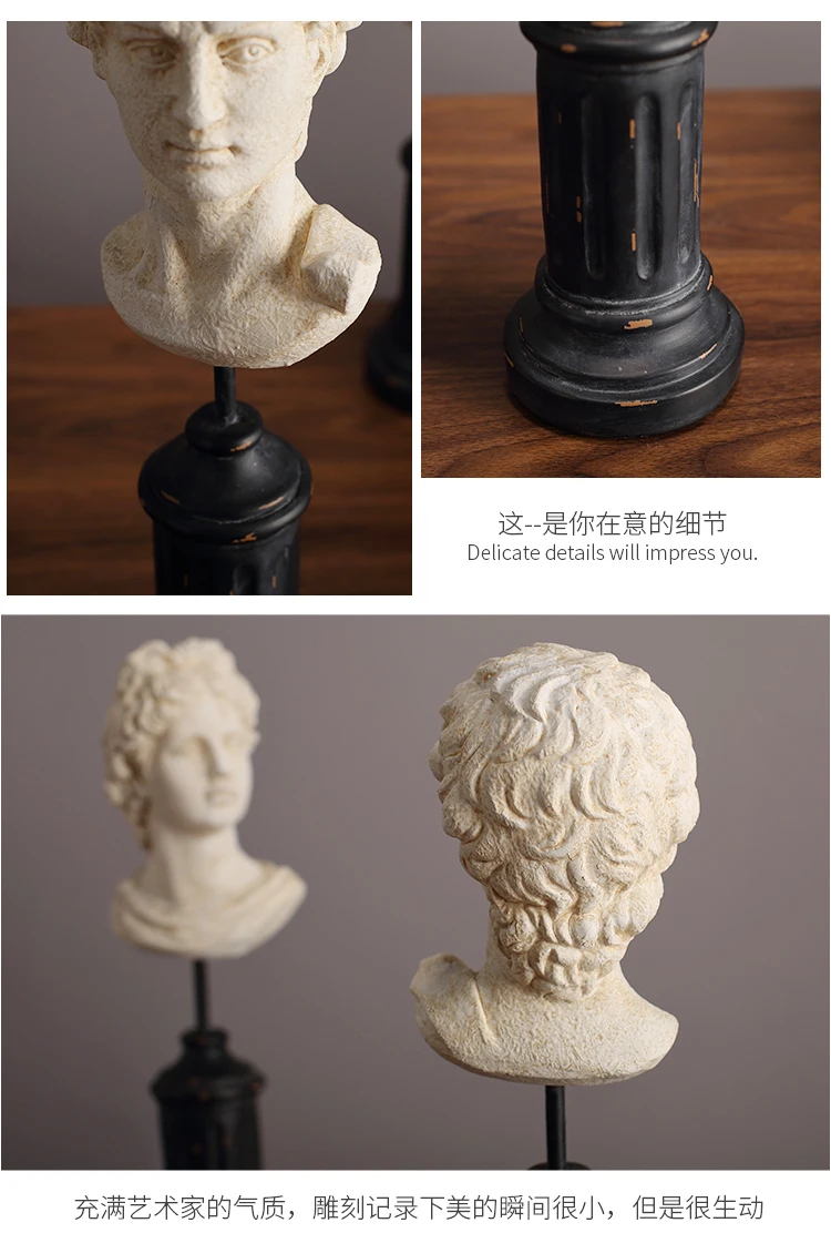 American Antique European Portrait Resin Sculpture Living Room Office Desk Accessories Creative Head Statue Art Home Decoration