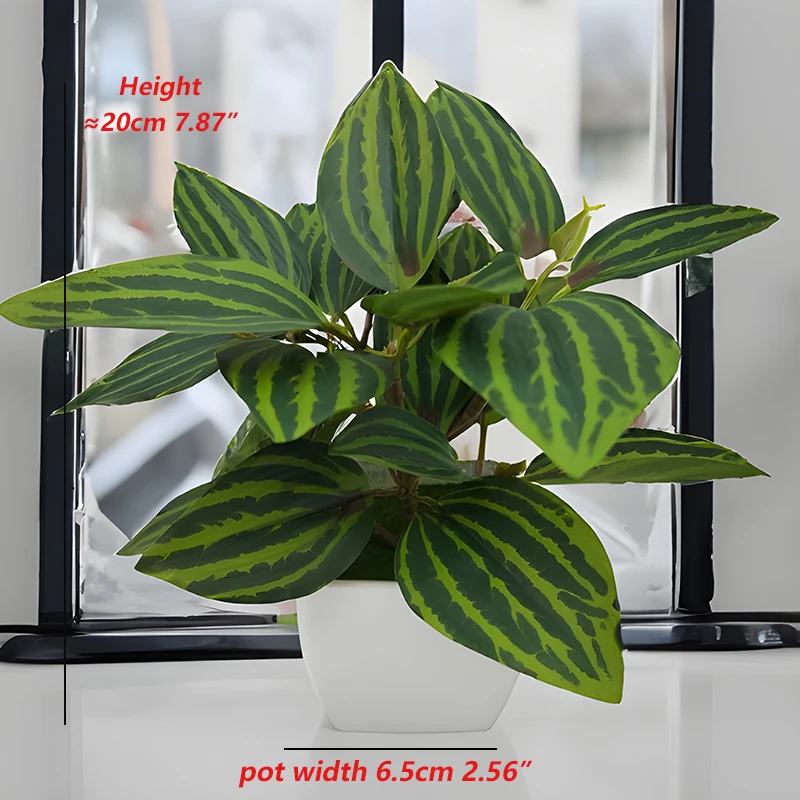 Artificial Plants Mini Apple Eyebrow Leaf Watermelon Leaves Green Fake Plant Potted Home Garden Balcony Wall Flower Decor