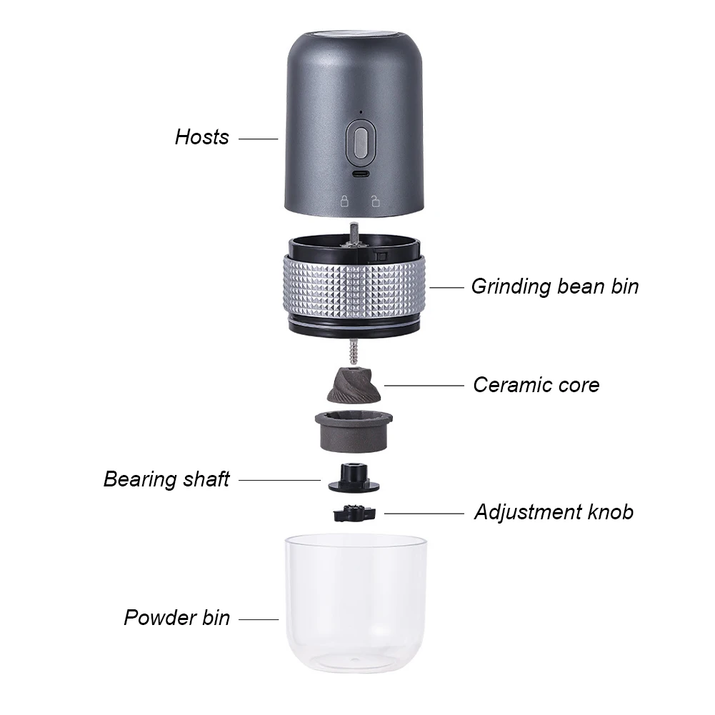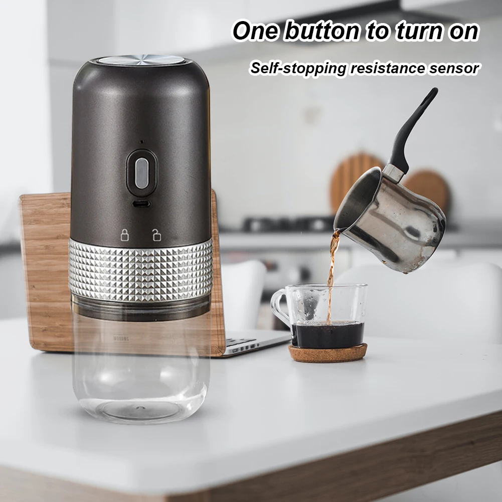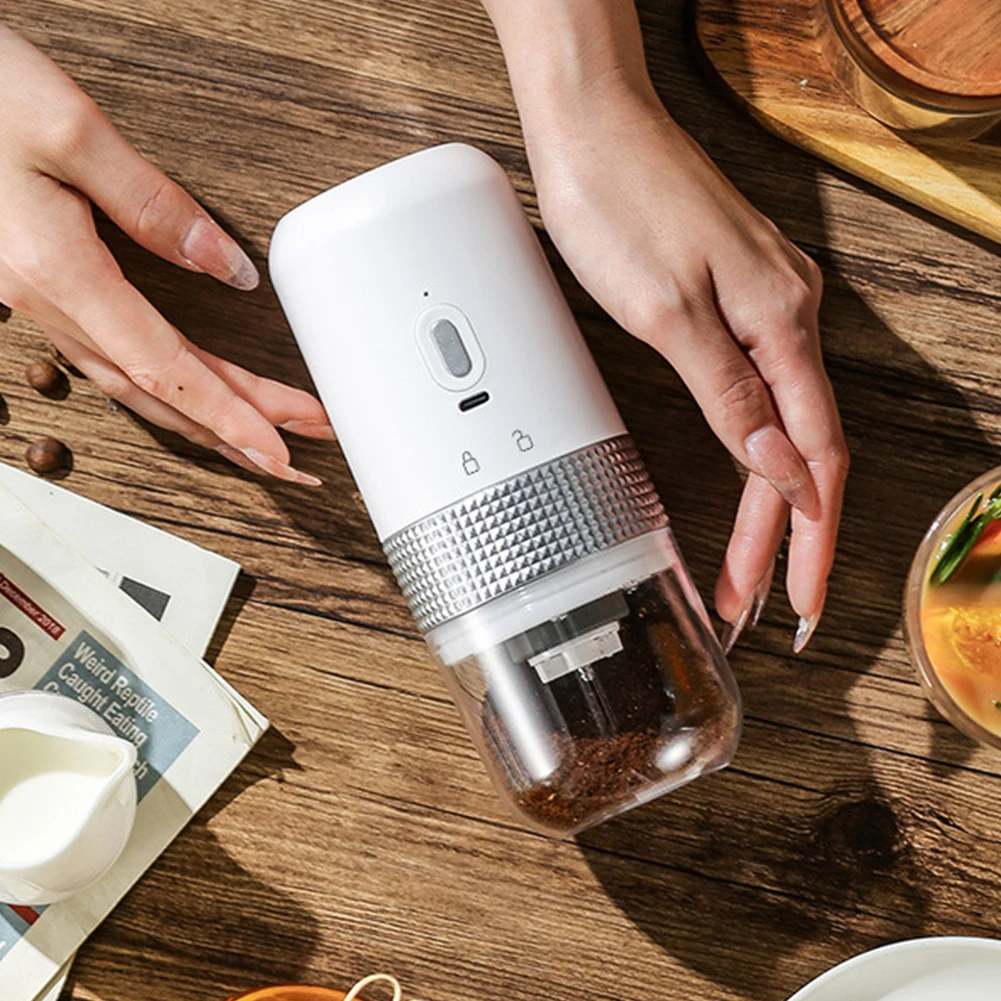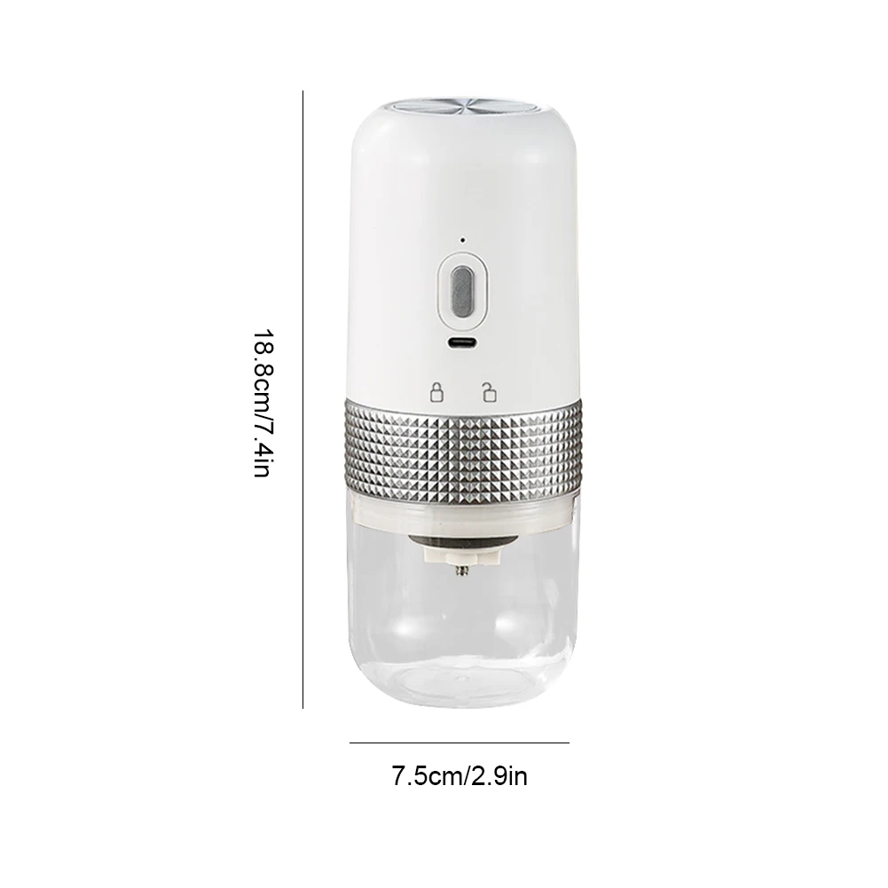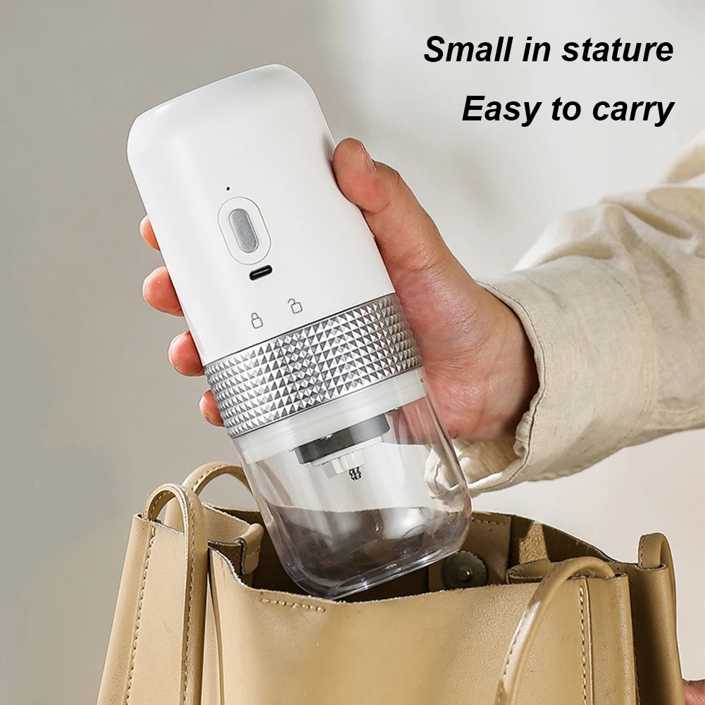 Feature: 1. Adjustable Grinding for Ultimate Precision: Experience the perfect grind with our ceramic grinding core coffee beans mill. The fineness can be easily adjusted according to your needs, allowing you to effortlessly handle various coffee-making utensils. Enjoy customized coffee grounds that cater to different brewing methods and satisfy your unique coffee preferences. 2. Preserve Flavor with Heatless Grinding: Our high-precision coffee maker accessories ensures optimal grinding without generating excessive heat. This helps retain the original flavor of the coffee beans, ensuring a rich and aromatic brew. Convenient flushing and residue-free operation guarantee a clean and odor-free experience, making every cup of coffee exceptional. 3. Powerful Performance with Quiet Operation: Equipped with a low-noise copper motor, our coffee maker offers consistent and stable rotation during the grinding process. The 1250mAh lithium battery provides strong endurance, allowing for prolonged usage. Enjoy a powerful and efficient grinding experience without disturbing your peaceful coffee moments. 4. Simple and Compact Design: Our mini conical burr mill boasts a simple and compact design. Its small and portable form factor fits comfortably in one hand, making it incredibly convenient for both home use and travel. Enjoy the ease and convenience of grinding fresh coffee beans anywhere you go. 5. Uniform Grind for Exceptional Results: Achieve uniformly ground coffee particles with our coffee bean mill. Experience excellent grinding performance, resulting in consistent particle size for optimal extraction. Elevate your coffee brewing game and enjoy a delicious cup of coffee every time. Specification: Bean Warehouse :50g Powder Bin: 150ml Size: 18.8*7.5cm/7.4*2.95inch Battery Capacity: 15w/1250mah Lithium Battery USB Charging Color(Optional):Black/White/Grey Note: Due to the different monitor and light effect, the actual color of the item might be slightly different from the color showed on the pictures. Thank you! Please allow 1-2cm measuring deviation due to manual measurement. ![]()
