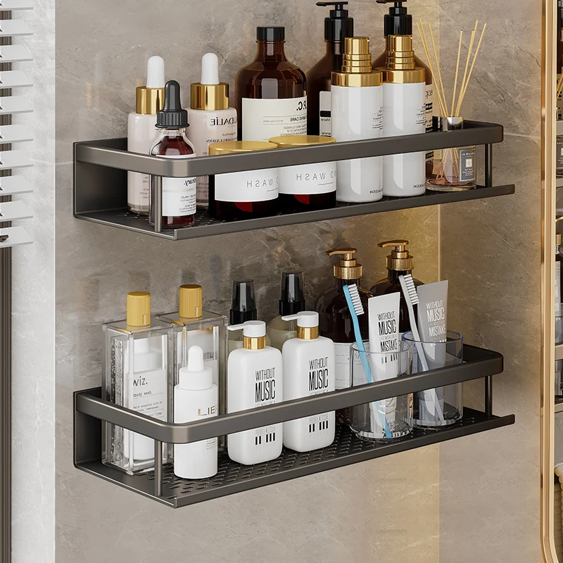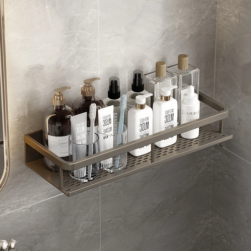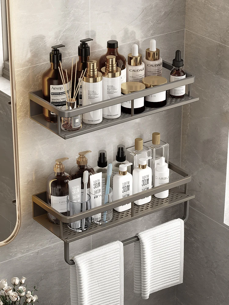 Bathroom Accessories Shelf Organizer Shower Storage Rack Gray Wall Mounted Space Aluminum Toilet Shampoo Holder Shelves 30-50CM