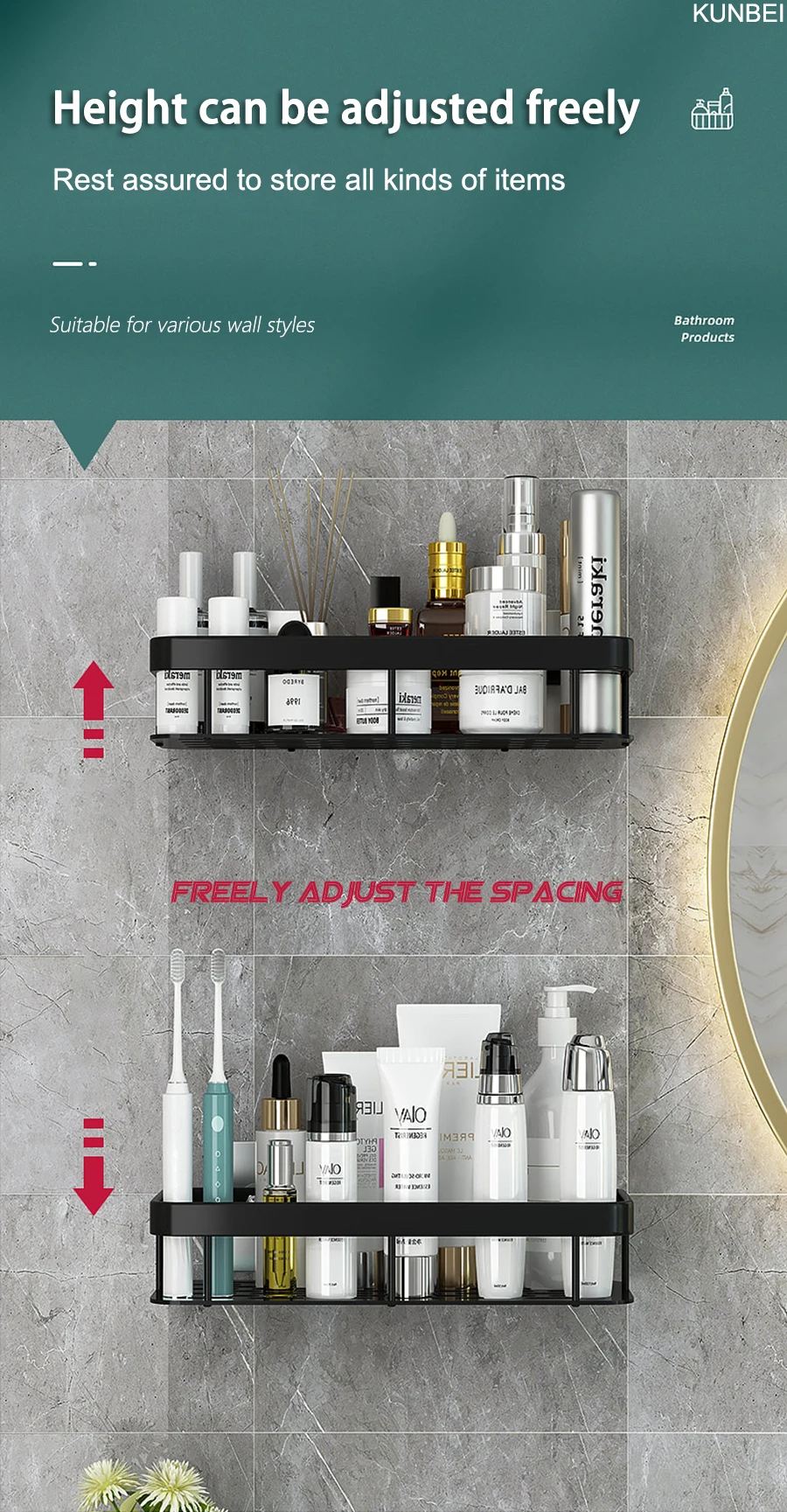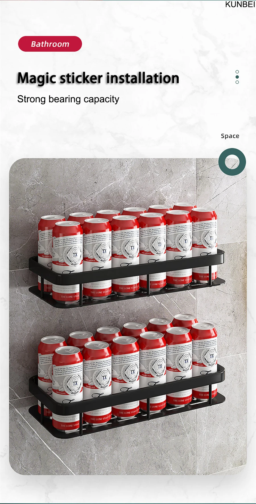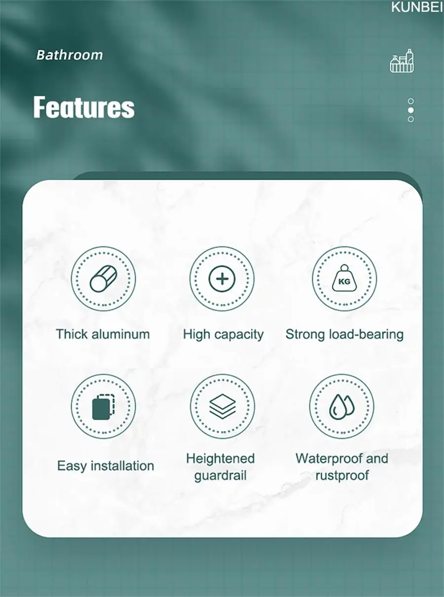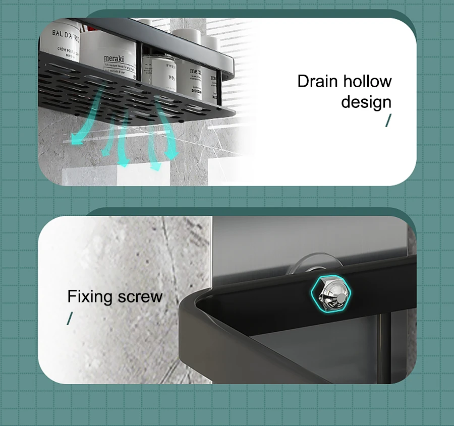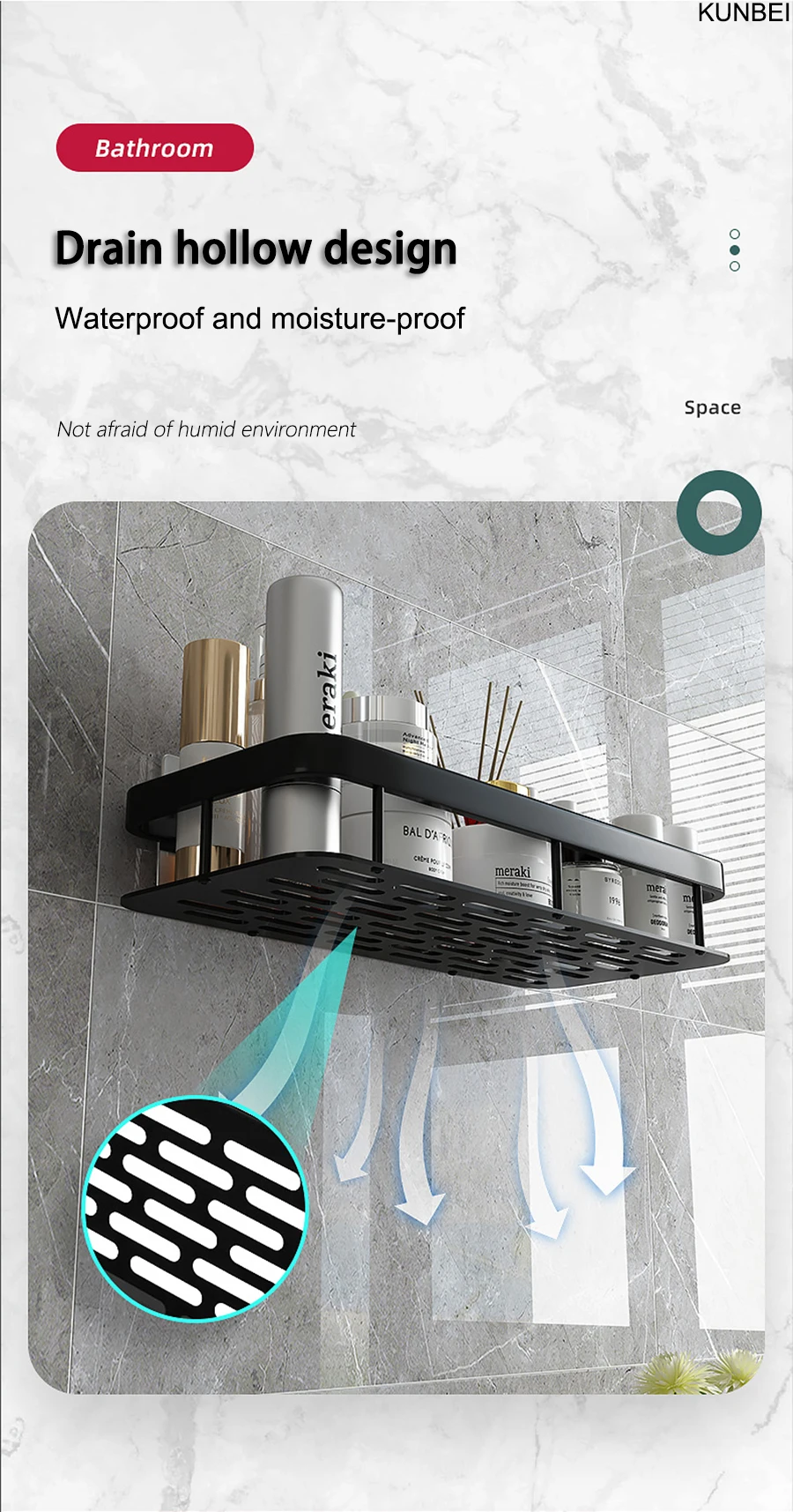 1. Made of high quality Aluminum material, bathroom racks, save bathroom space, drain design.