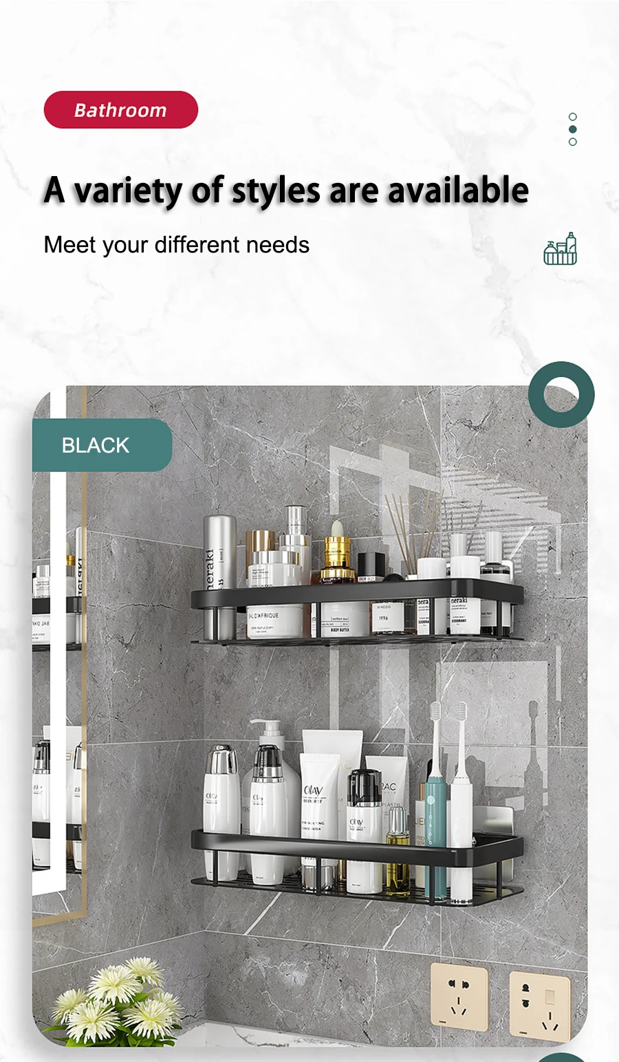 2. Multifunctional bathroom rack, thick material, strong and durable.