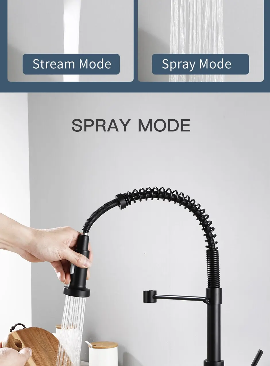 Black and Chromed Spring Pull Down Kitchen Sink Faucet Hot and Cold Water Mixer Crane Tap with Dual Spout Deck Mounted