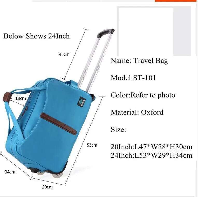 brand cabin luggage bag Rolling suitcase trolley travel bag on wheels for women men travel Duffle Oxford Wheeled Travel bag