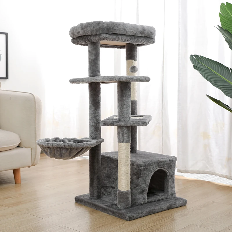 Cat Tree Tower Cat Scraper with Hammock Cat Scratcher with Sisal Scratching Post Furniture Climbing Frame Condo Top Soft Perch