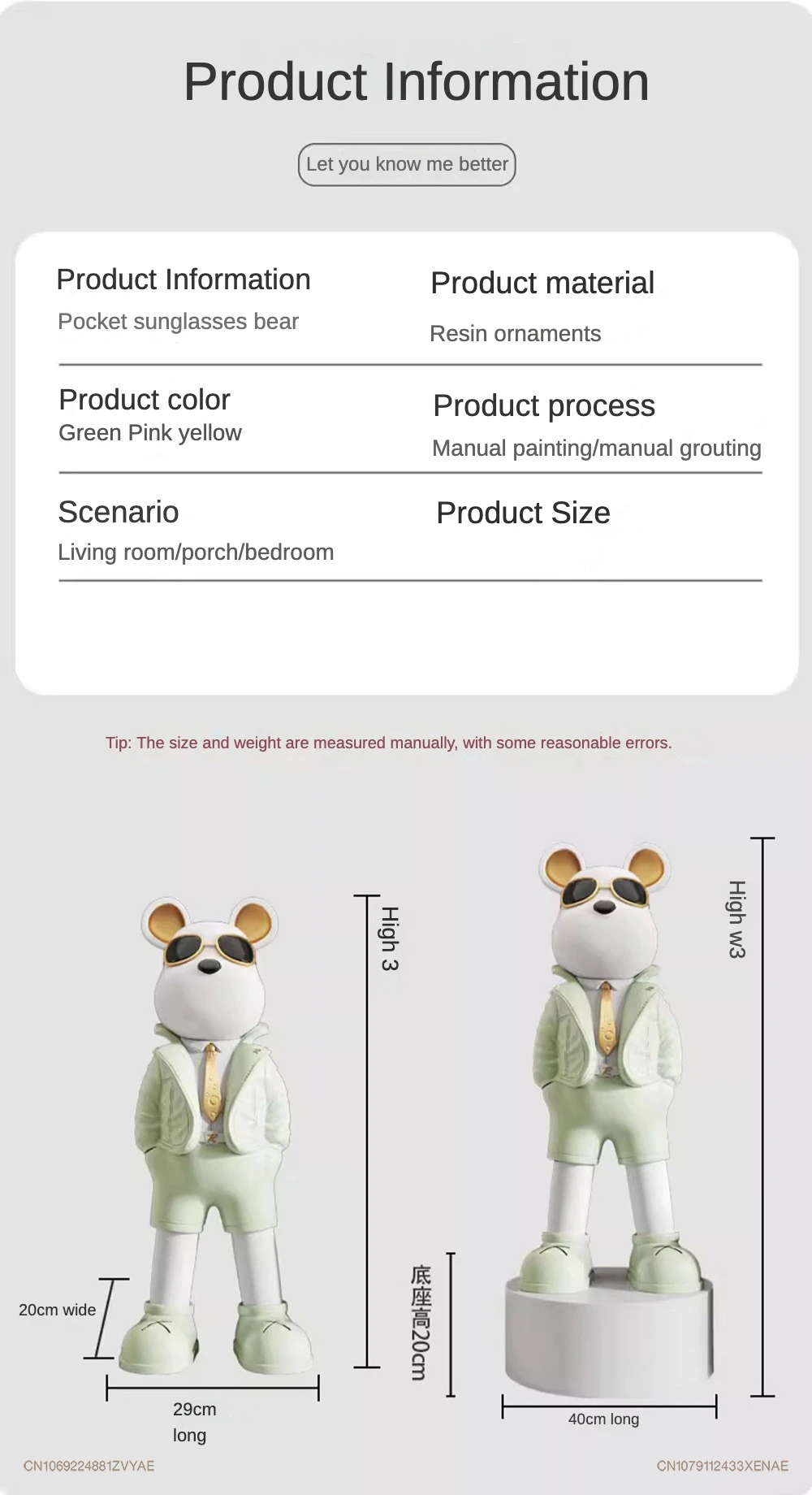 02. Product Size: Product measurement is manual, 1-3 cm is in the normal range, please don't buy if you mind.