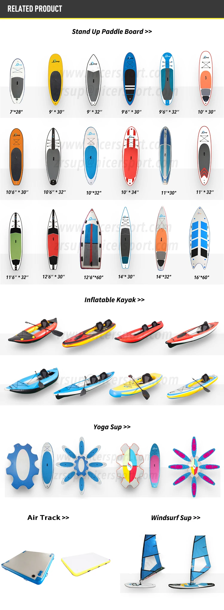 Our annual production of inflatable stand up paddle boards is more than 300,000pcs, inflatable kayaks 50,000PCS, inflatable air tracks 60,000 PCS.