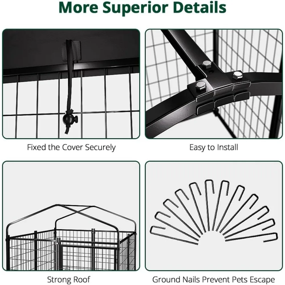 - 【Waterproof Removable Roof】PawGiant dog enclosure outdoor roof is made of durable UV-resistant and waterproof Oxford cloth that can fit the outdoor dog run perfectly, with elastic ropes, which can better hold the roof firmly and not afraid of being blown away by the wind. The UV-resistant design prevents fading and cracking after exposure to the sun, and the waterproof design protects your pet from rain in inclement weather.