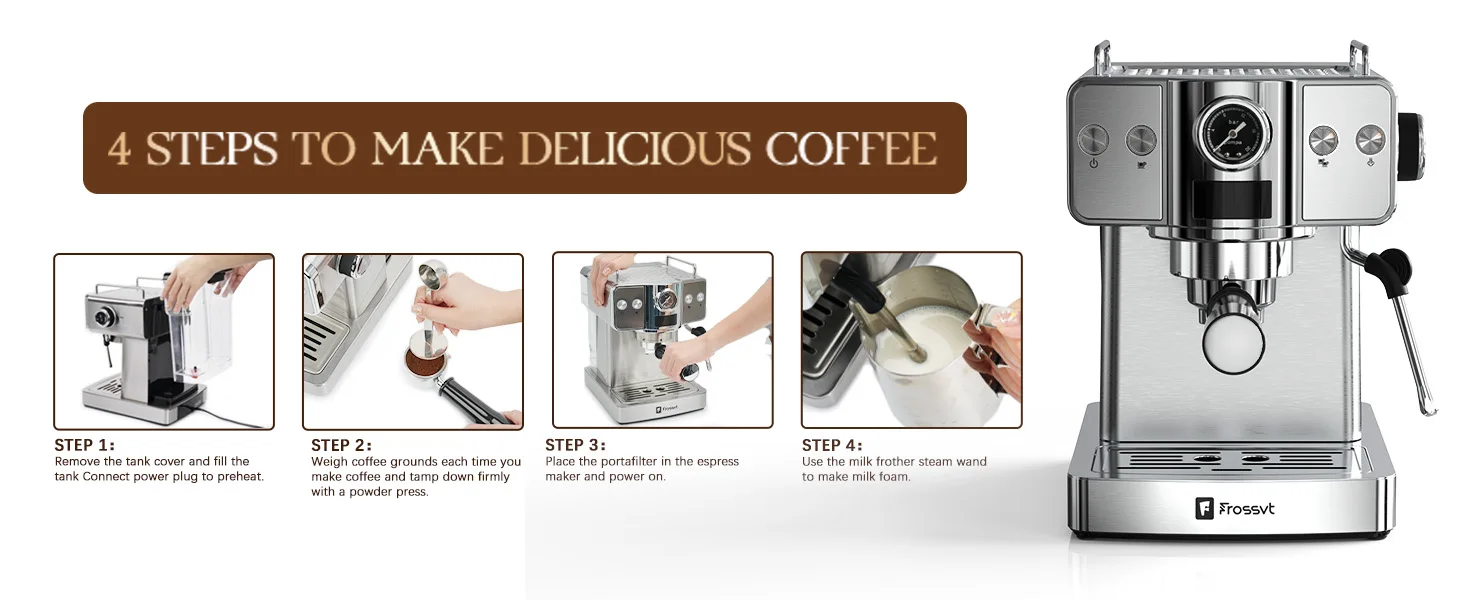Espresso Machine, 20 Bar Espresso Maker with Milk Frother Steam Wand for Latte and Cappuccino, Stainless Steel Coffee machines