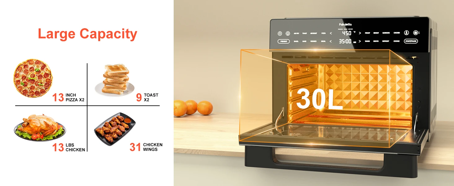 Fabuletta Air Fryer Toaster Oven Combo - 32 QT Large Countertop Convection Toaster Oven,18-in-1 Digital Airfryer with Dehydrate