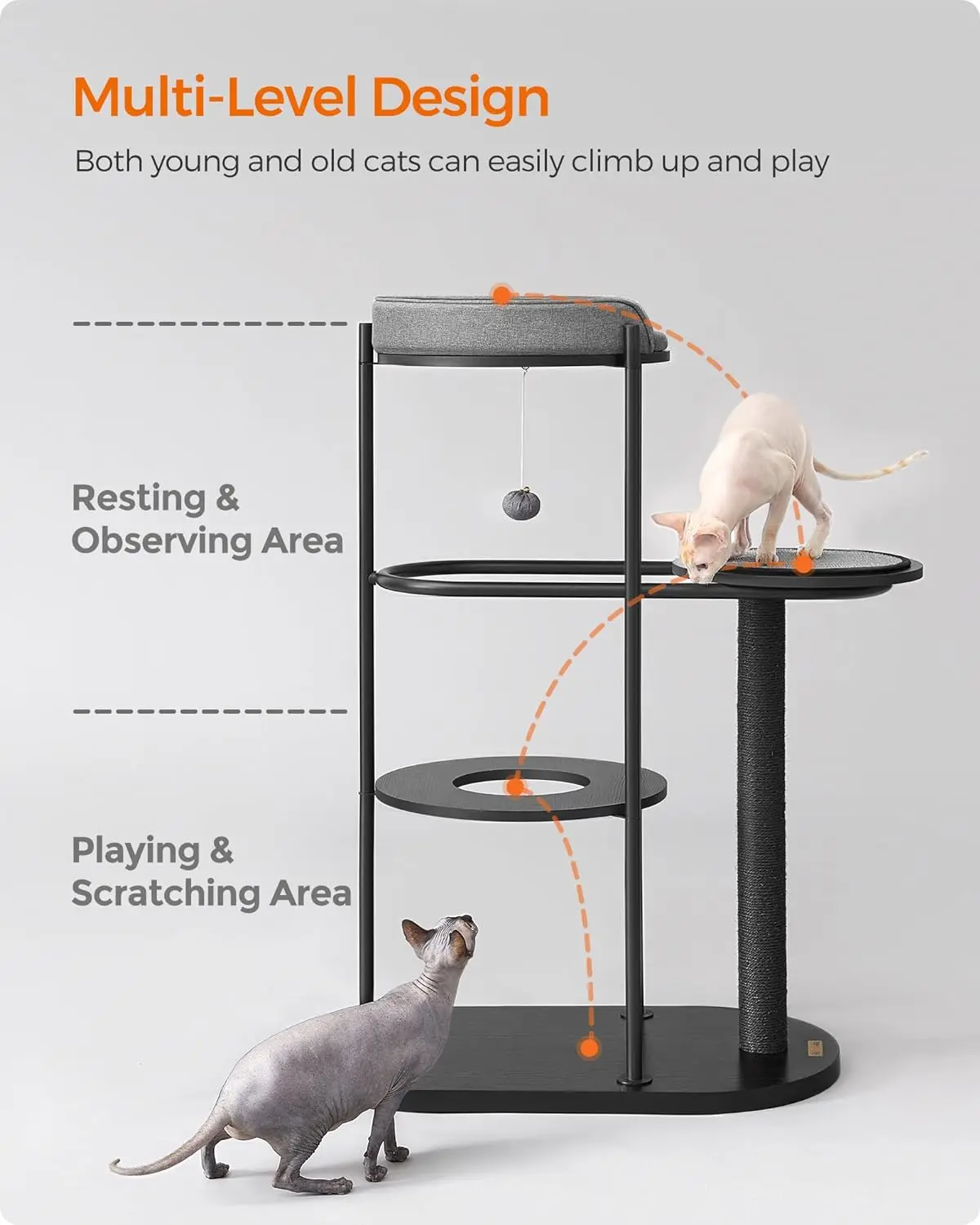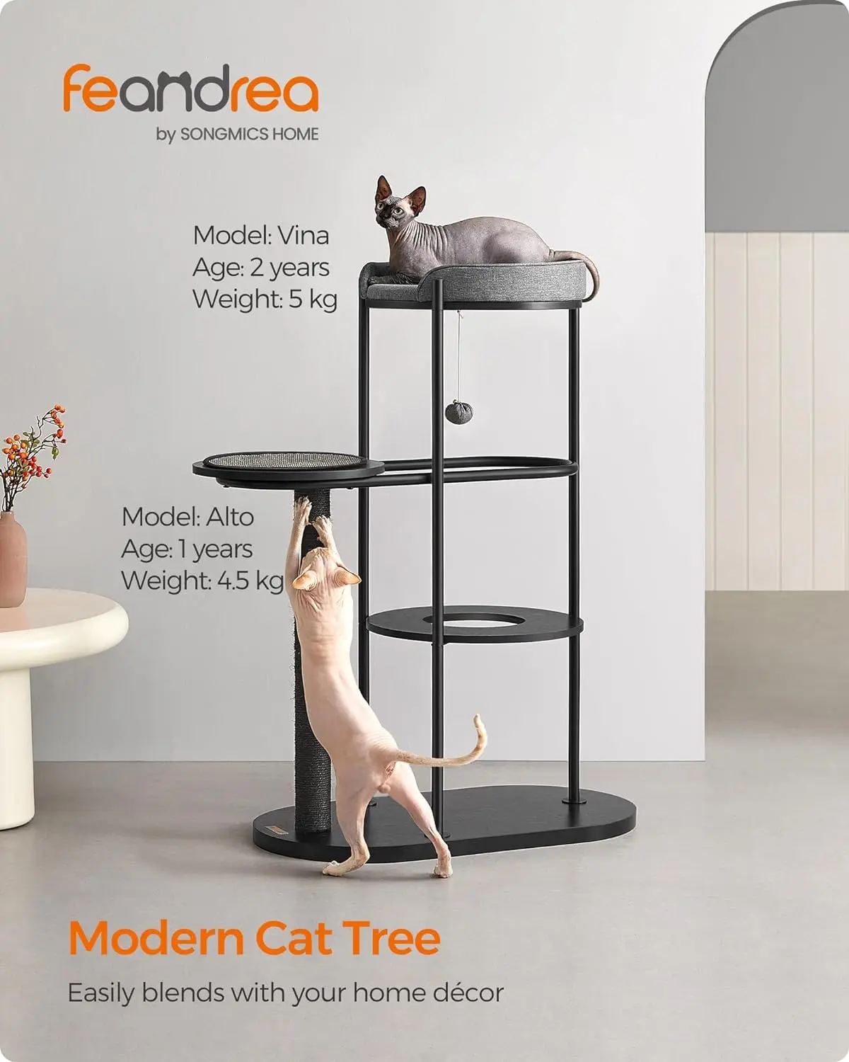 Feandrea Modern Cat Tree, Heavy Duty Cat Tower, Steel Tube and Particleboard, Platform with Cushion, Sisal Cat Scratching Post,
