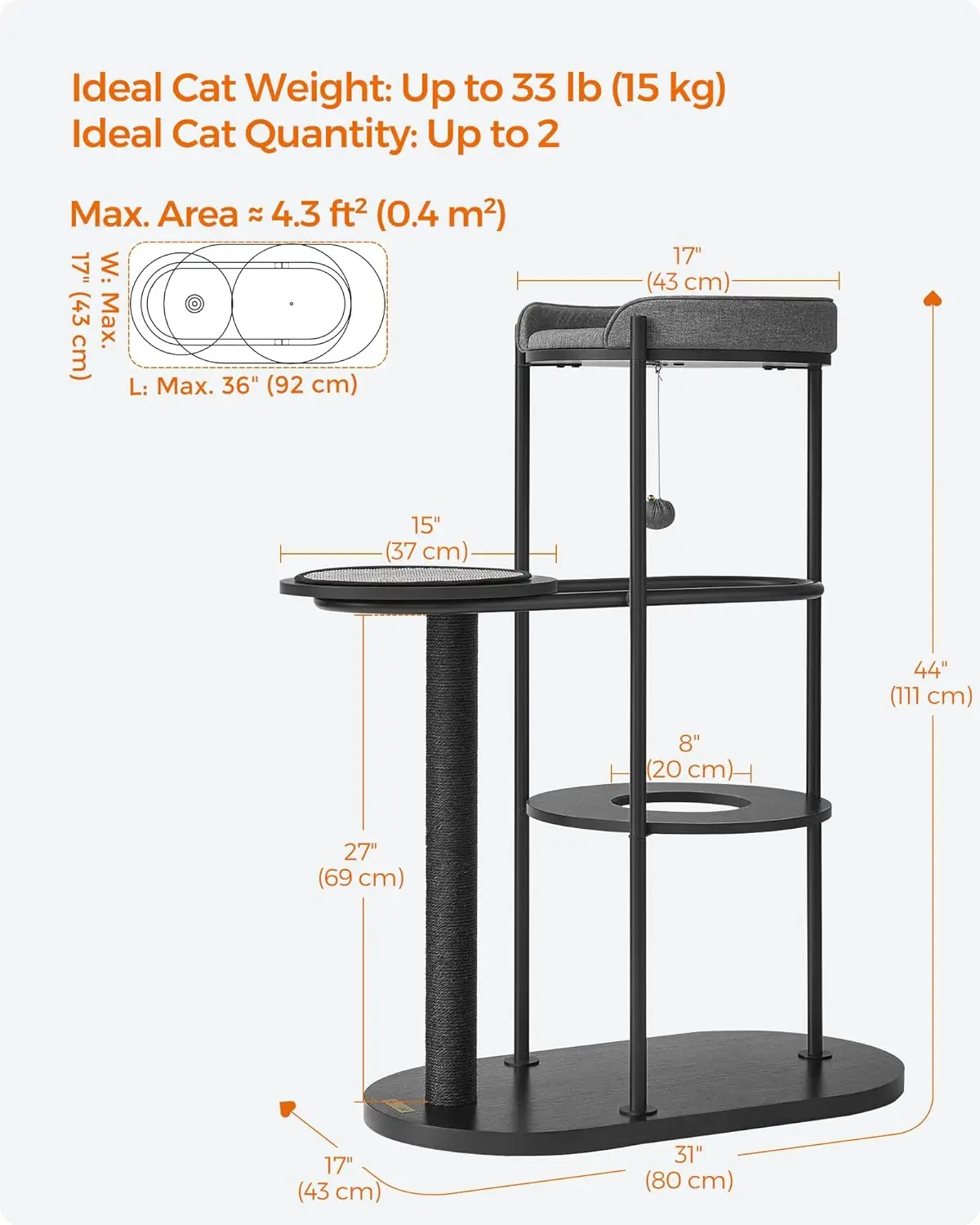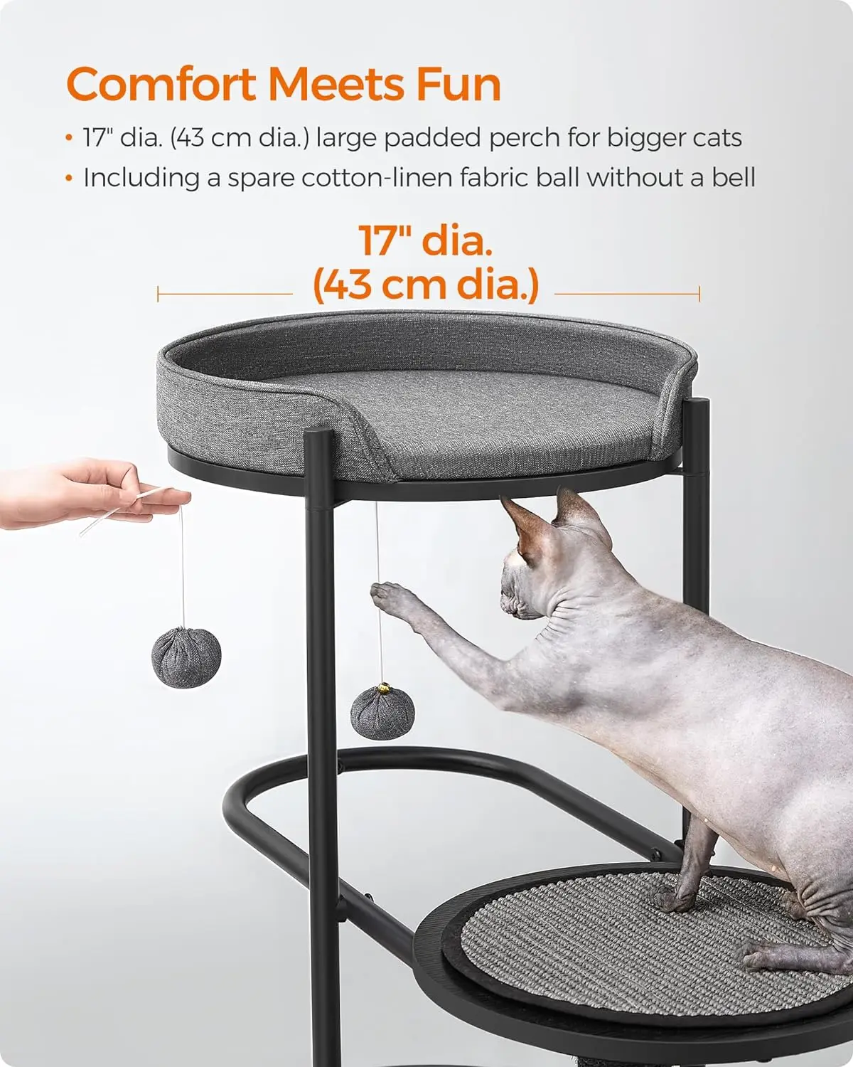 - [Ideal for Large Cats] Our cat tower has a spacious 17" platform, offering a cozy space for large cats to lounge. Standing at 27", the sisal scratching post allows cats fully extend and sharpen their claws
