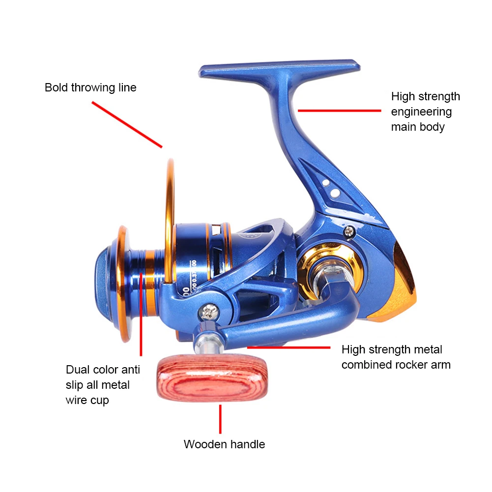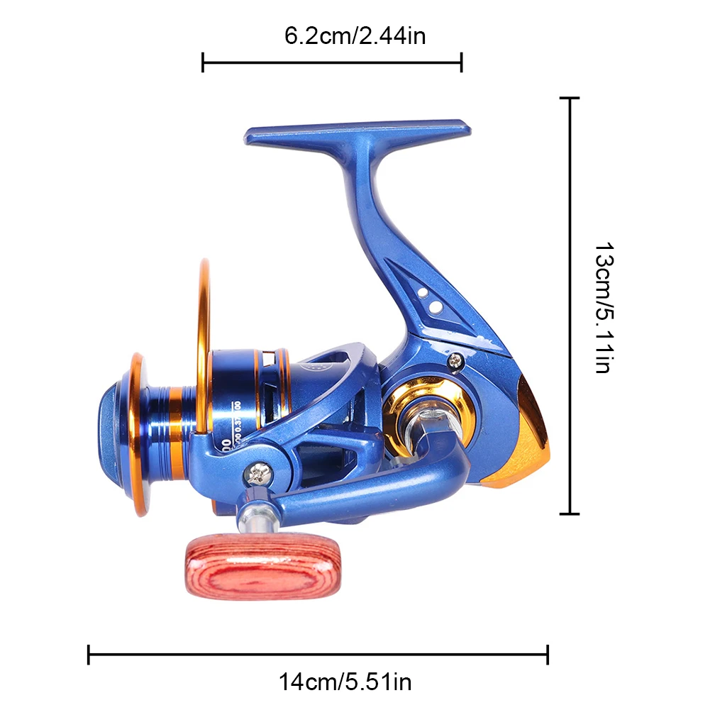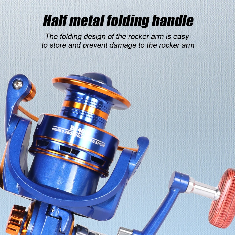 Feature: 1. Waterproof and Versatile: This metal-headed fishing reel is made for both saltwater and freshwater fishing. 2. Lightweight and Durable: The aluminium alloy spool provides high strength while keeping the overall weight of the reel low, making it easy to handle during long fishing sessions. 3. Folding Handle Design: The half-metal folding handle design makes it easy to store and transport, while also providing additional strength and durability. 4. High-Speed Bearings: The stainless steel ball bearings provide a smooth and fast line retrieval experience, ensuring that you never miss a catch due to tangled or stuck lines. 5. Multi-Functional: This spinning reel is suitable for various kinds of fishing, including lure fishing, boat fishing, sea fishing, and much more. Specification: Origin: Mainland China