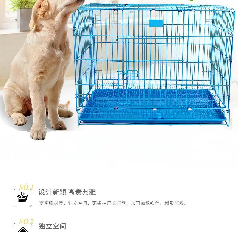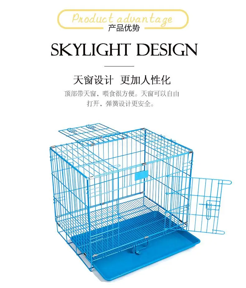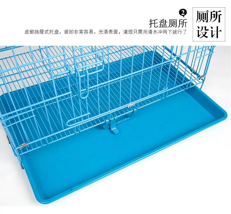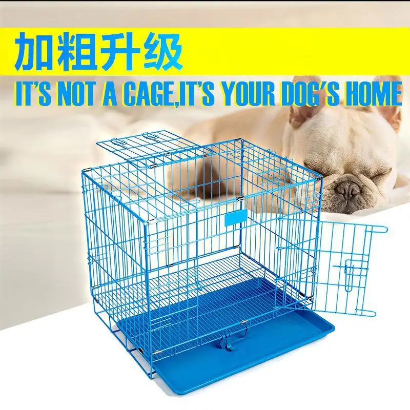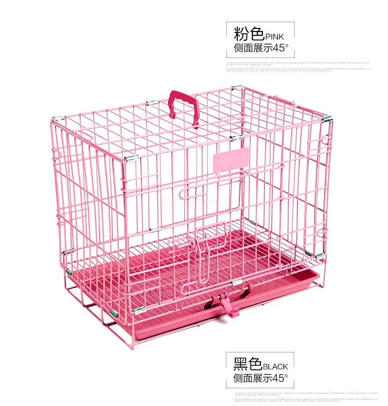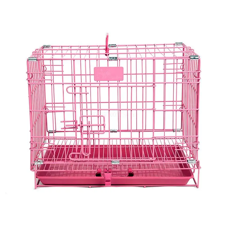 Folding Metal Dog Crate Foldable Pet Cat Cage Kennel Double-Door Easy Install Pink Blue S size for Small pet 45*30*38CM