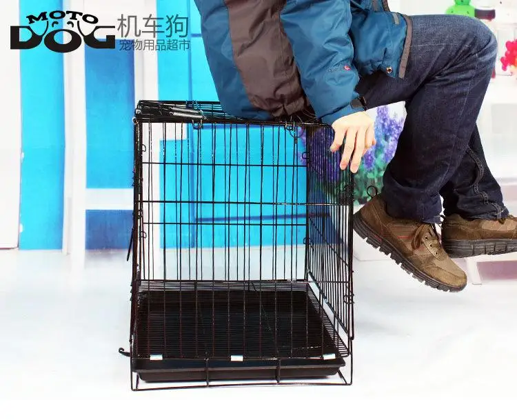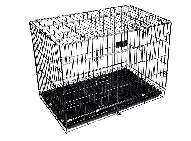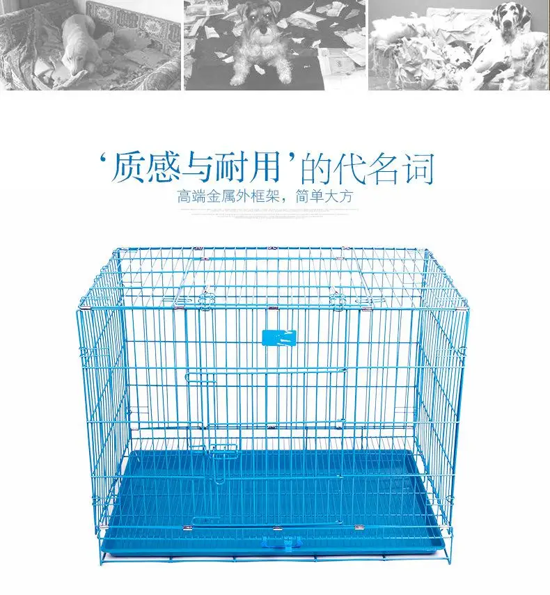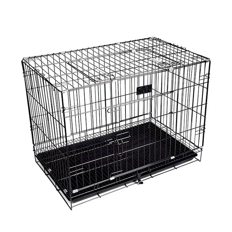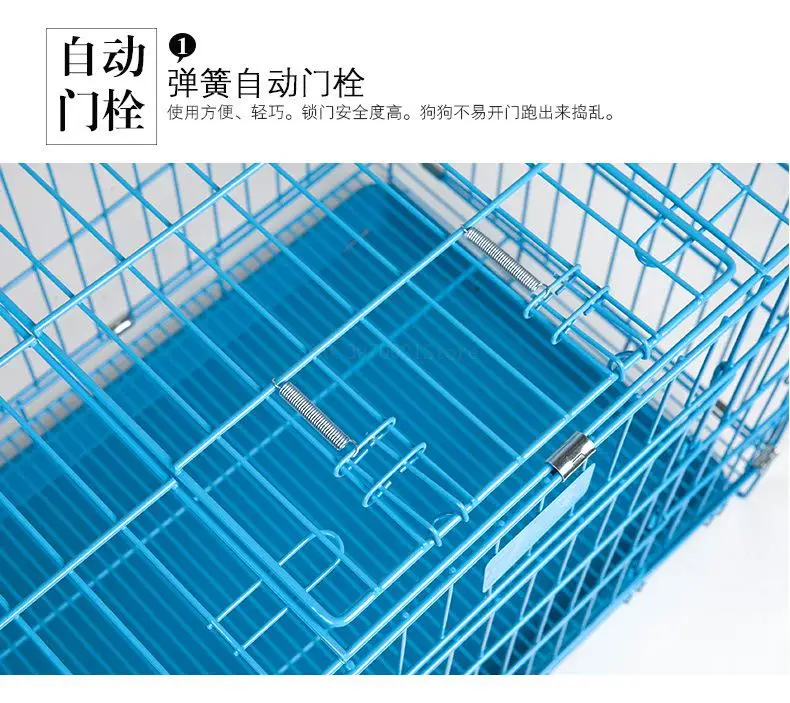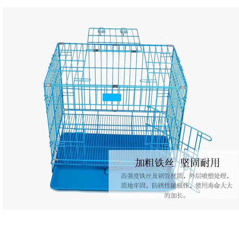 Folding Metal Dog Crate Foldable Pet Cat Cage Kennel Double-Door Easy Install Pink Blue S size for Small pet 45*30*38CM
