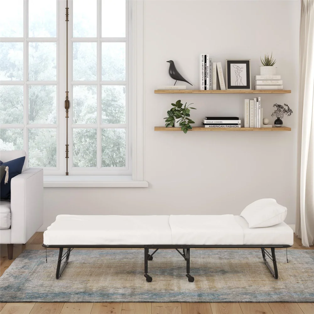 Folding Rollaway Guest Bed with 5 Inch Mattress, Twin