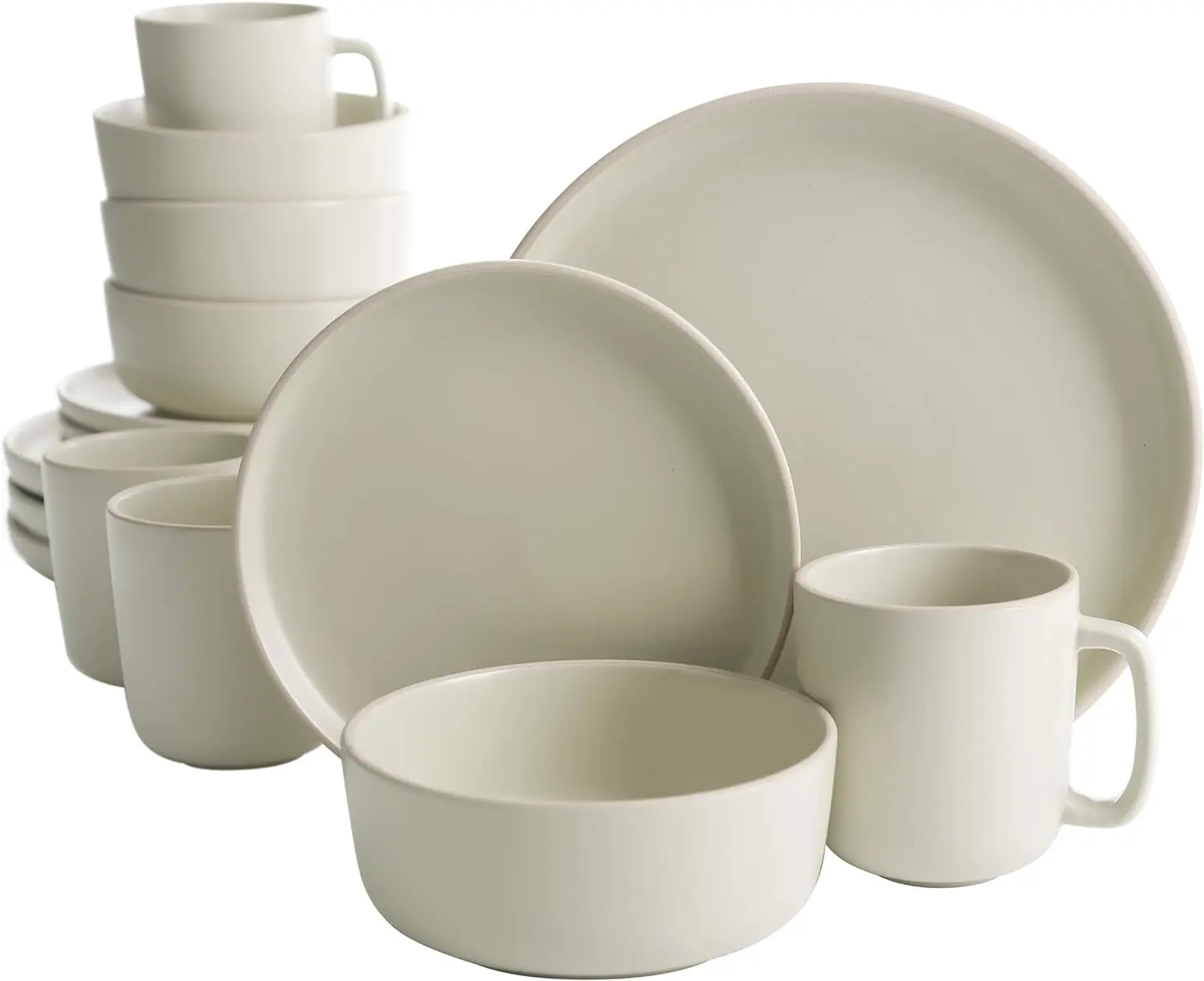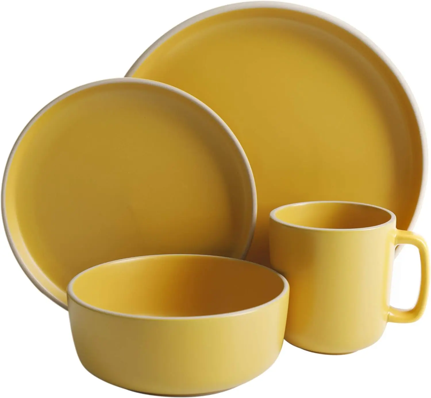 - STYLISH DESIGN: inspired by the lively beaches of Los Angeles, the Zuma dinnerware set was designed with a soft matte glaze on stoneware featuring an off-white edged lip along the rim. The soft lip edges will help prevent any food from falling off your plate