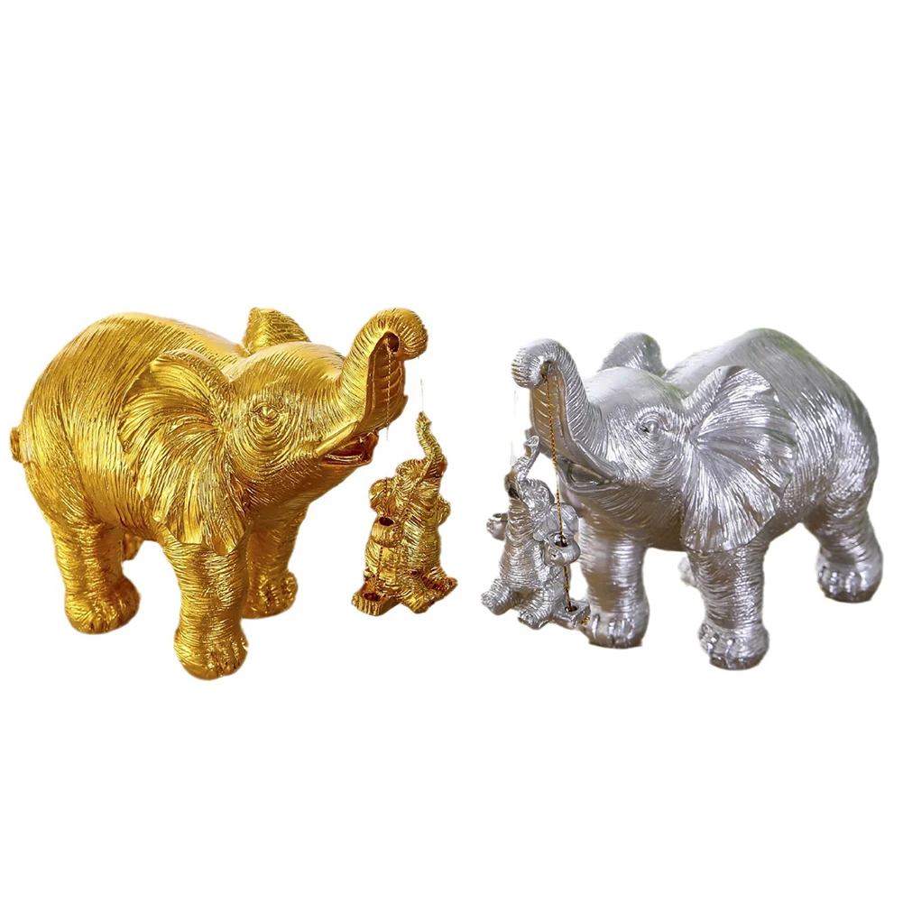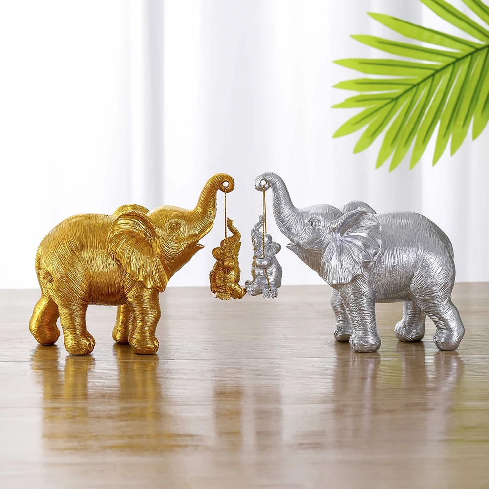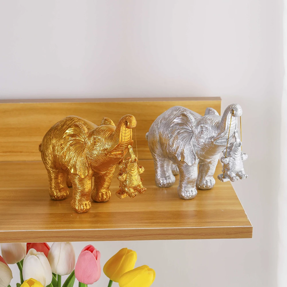 Gold/Silver Animal Elephant Sculpture Brings Good Luck Cute Elephant Figurines Swing Elephant Decor for Home Living Room Decor