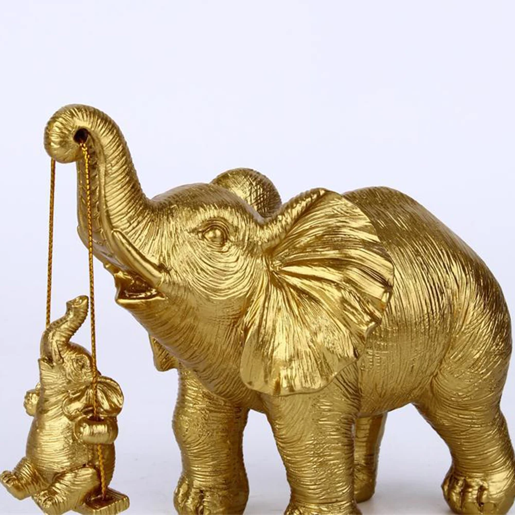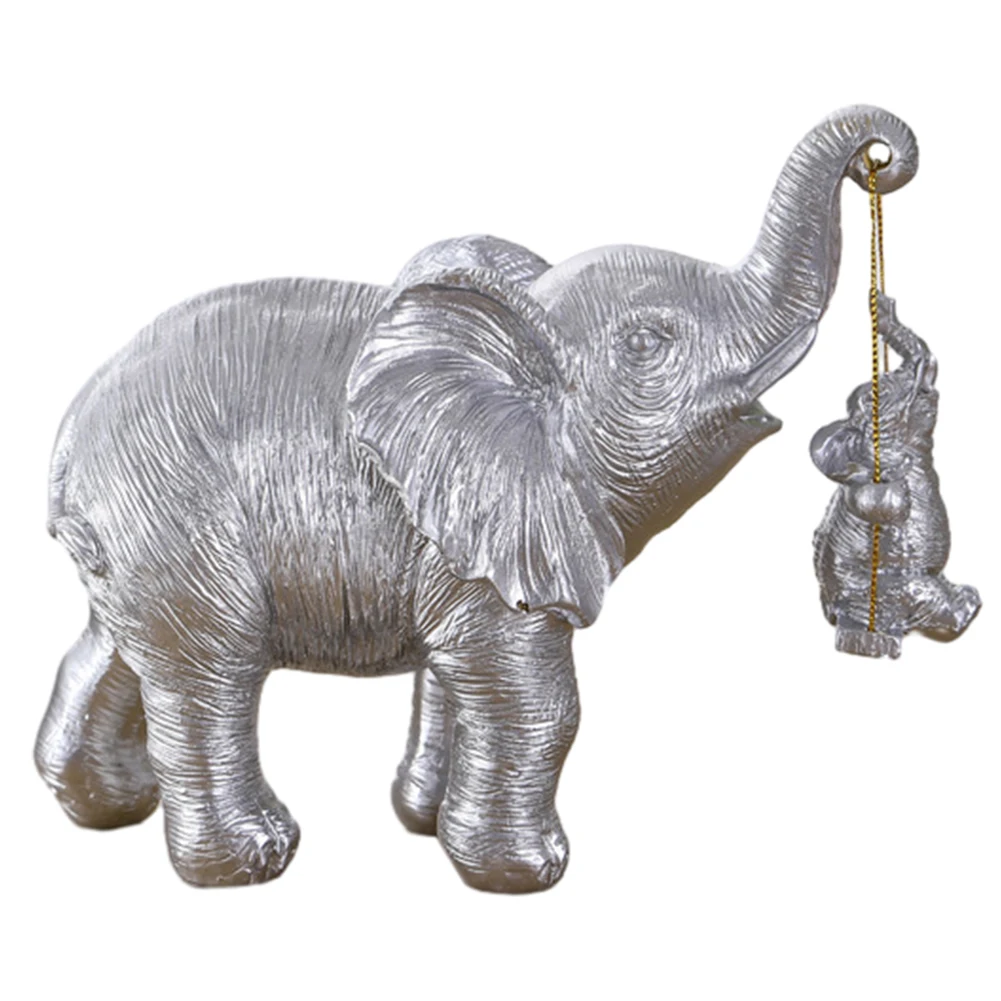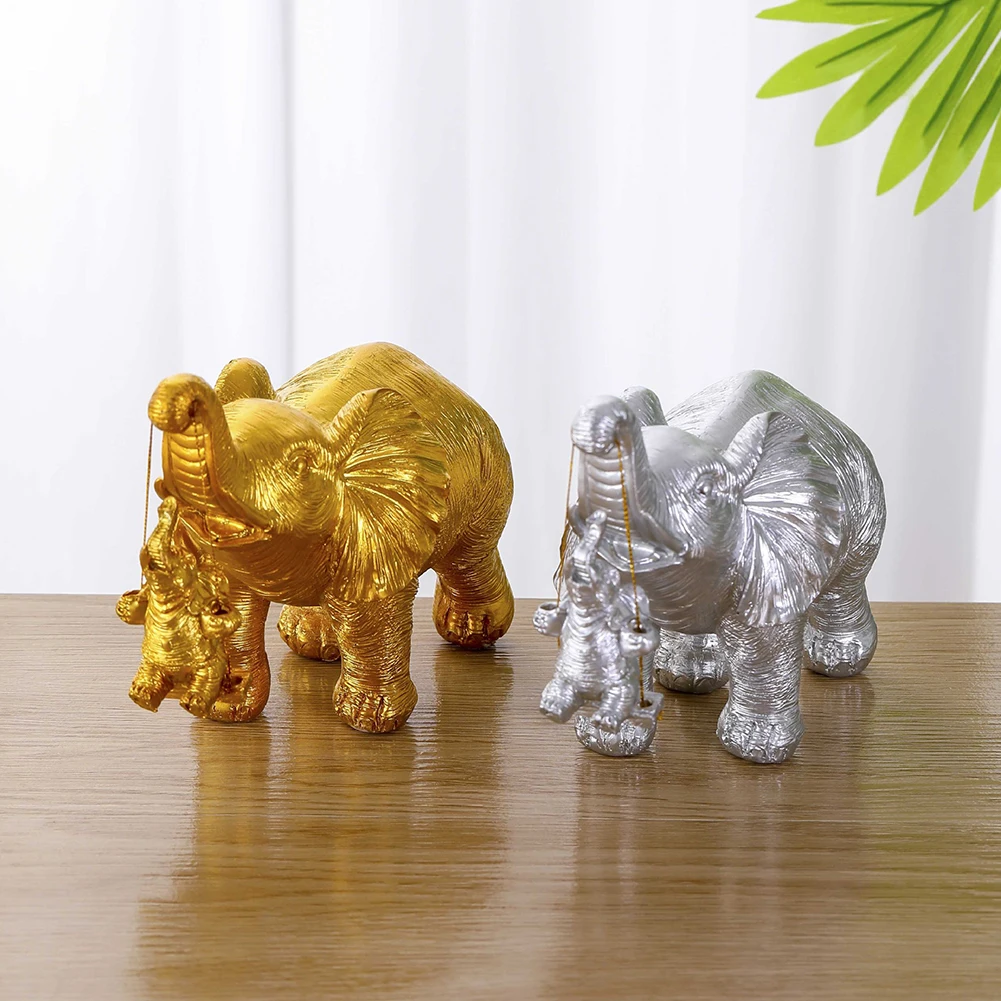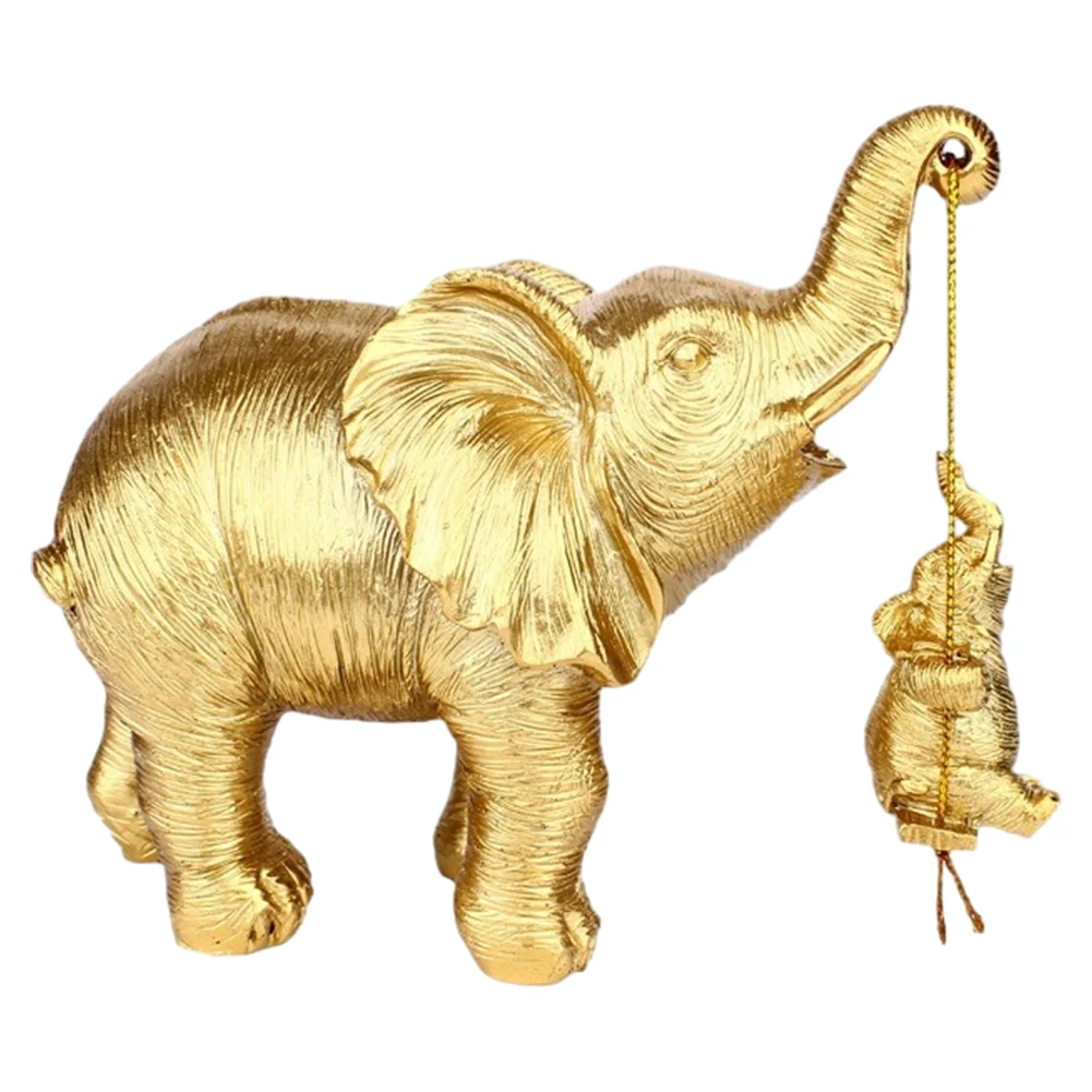 Gold/Silver Animal Elephant Sculpture Brings Good Luck Cute Elephant Figurines Swing Elephant Decor for Home Living Room Decor