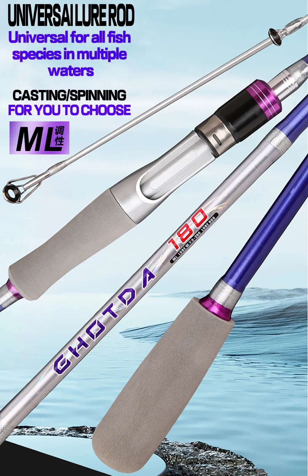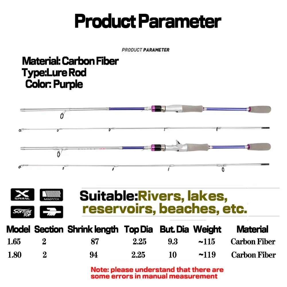 High Quality Ultra-light Spinning Casting Fishing Rod 2Sections 1.65/1.8m ML Power Fast Action Baitcasting Rod Lure Weight 3-20g