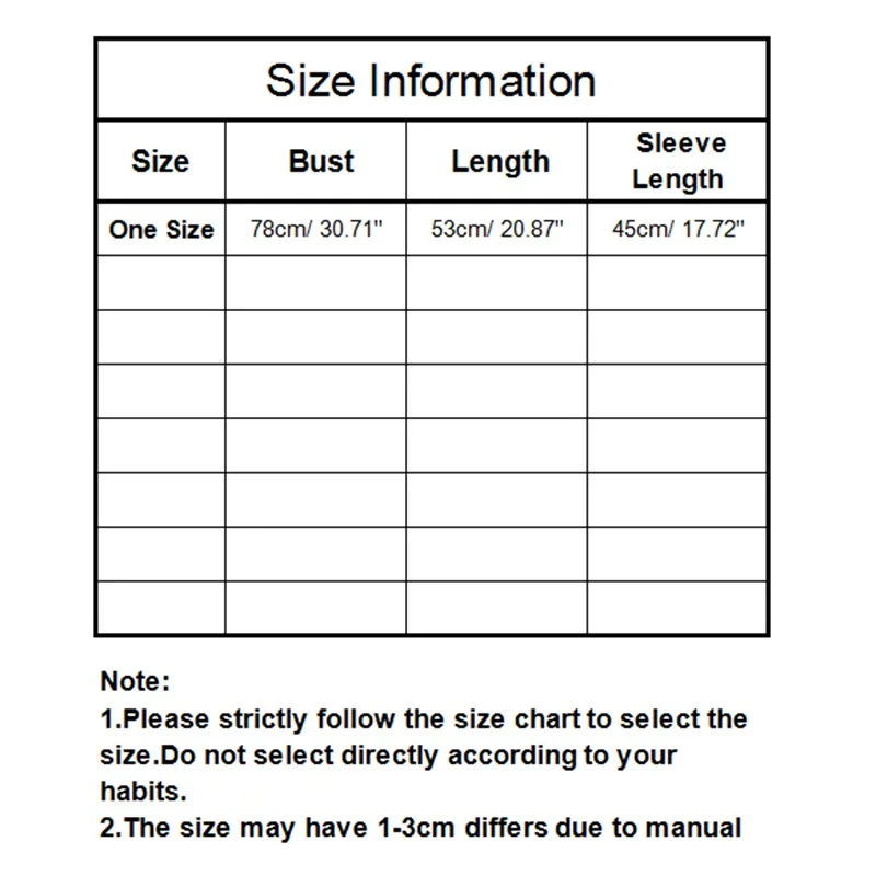 One Size: Bust 78cm(30.71"), Length 53cm(20.87"), Sleeve Length 45cm(17.72")