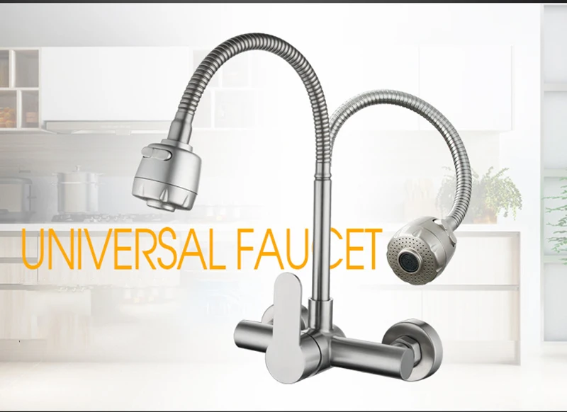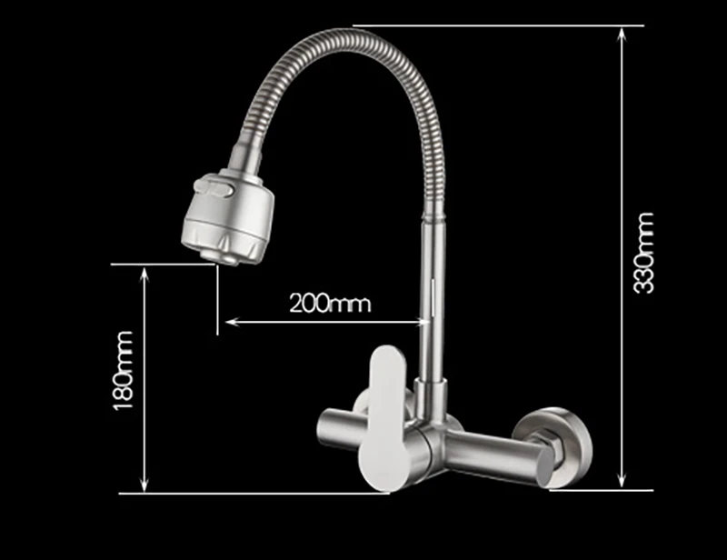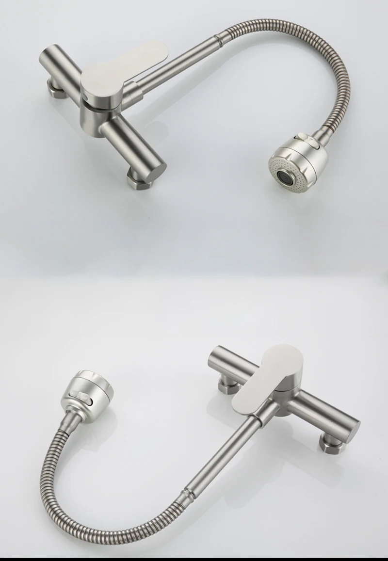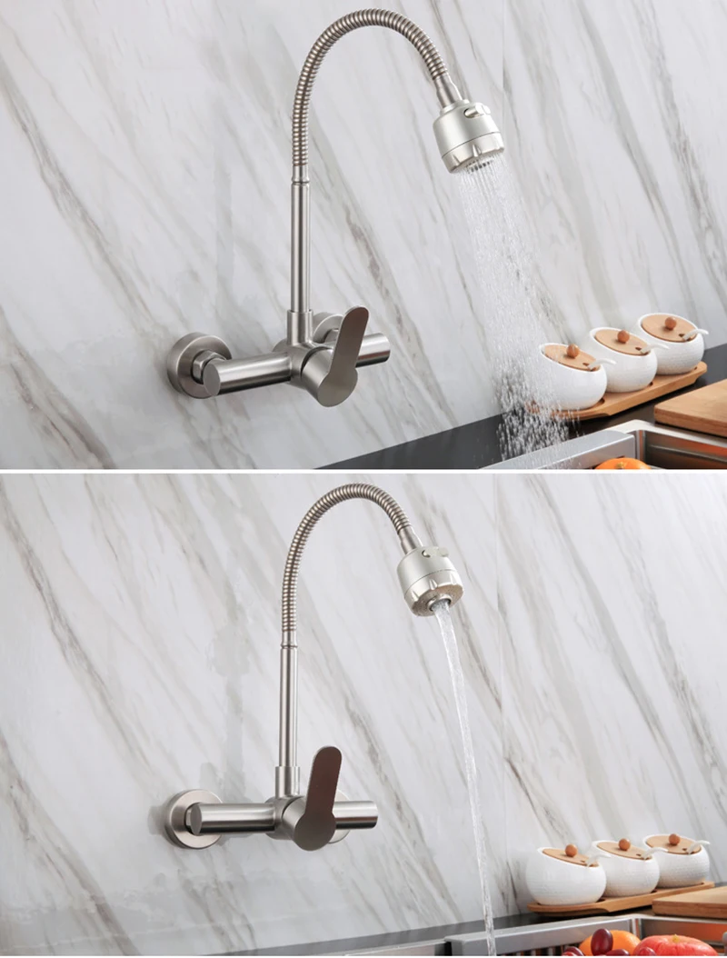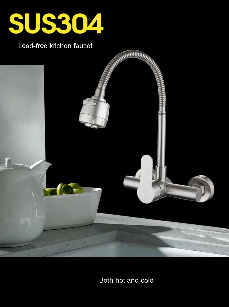 Kitchen Faucet 304 Stainless Steel Wall Mounted Tap Water Saving Bathroom Sink Cranes Gourmet Washbasin Mixing Switch