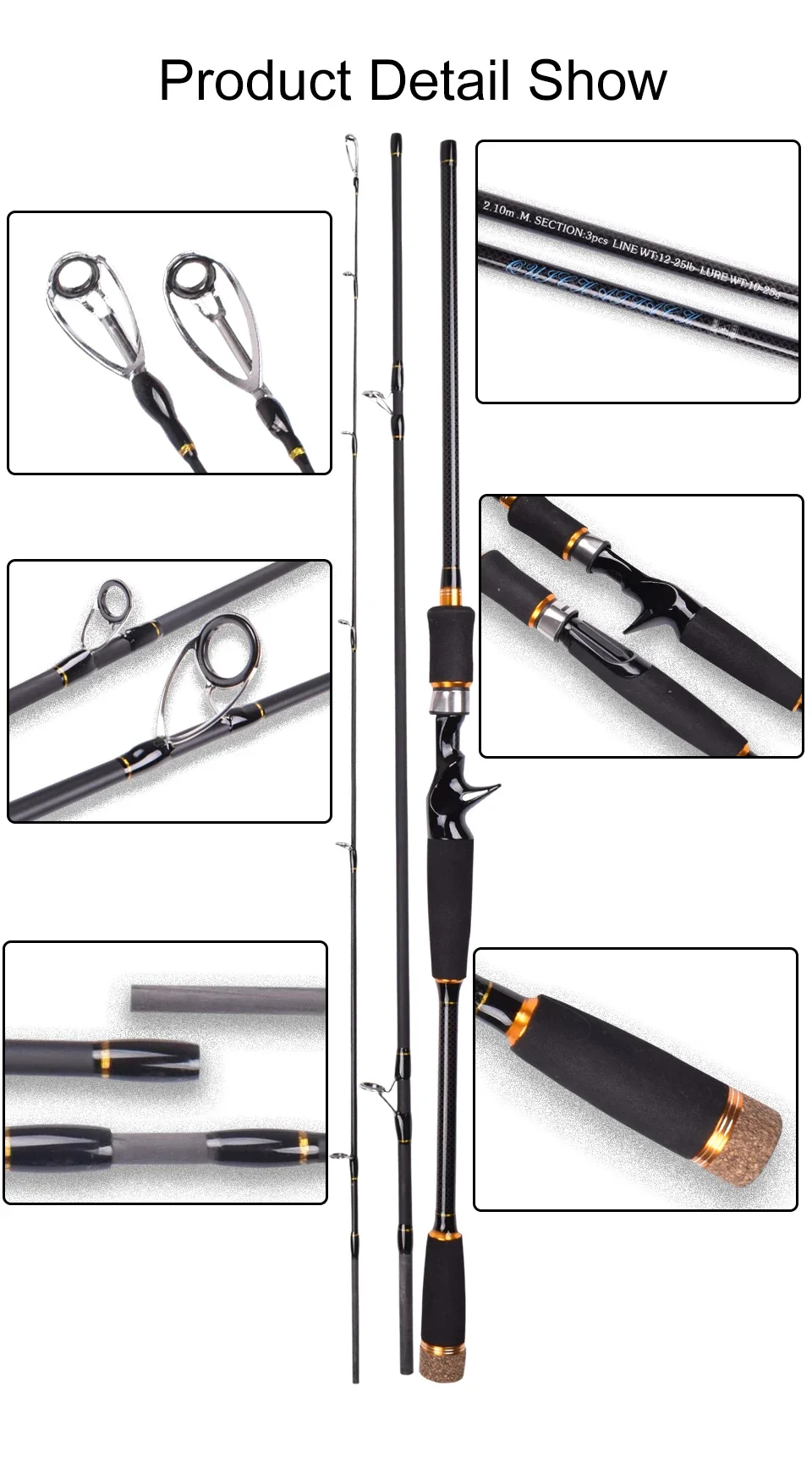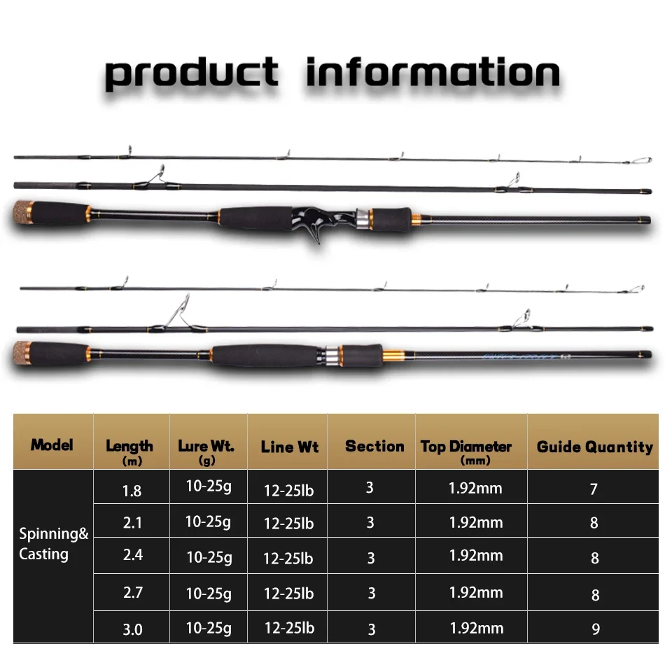 Casting Rod | Length: 1.8m/ 2.1m/2.4m/2.7m/3.0m| Lure Weight: 10-25g | Section: 3 | Top Diameter: 1.92mm |Line Weight: 12-25lb |Guide Quantity: 7/8/9