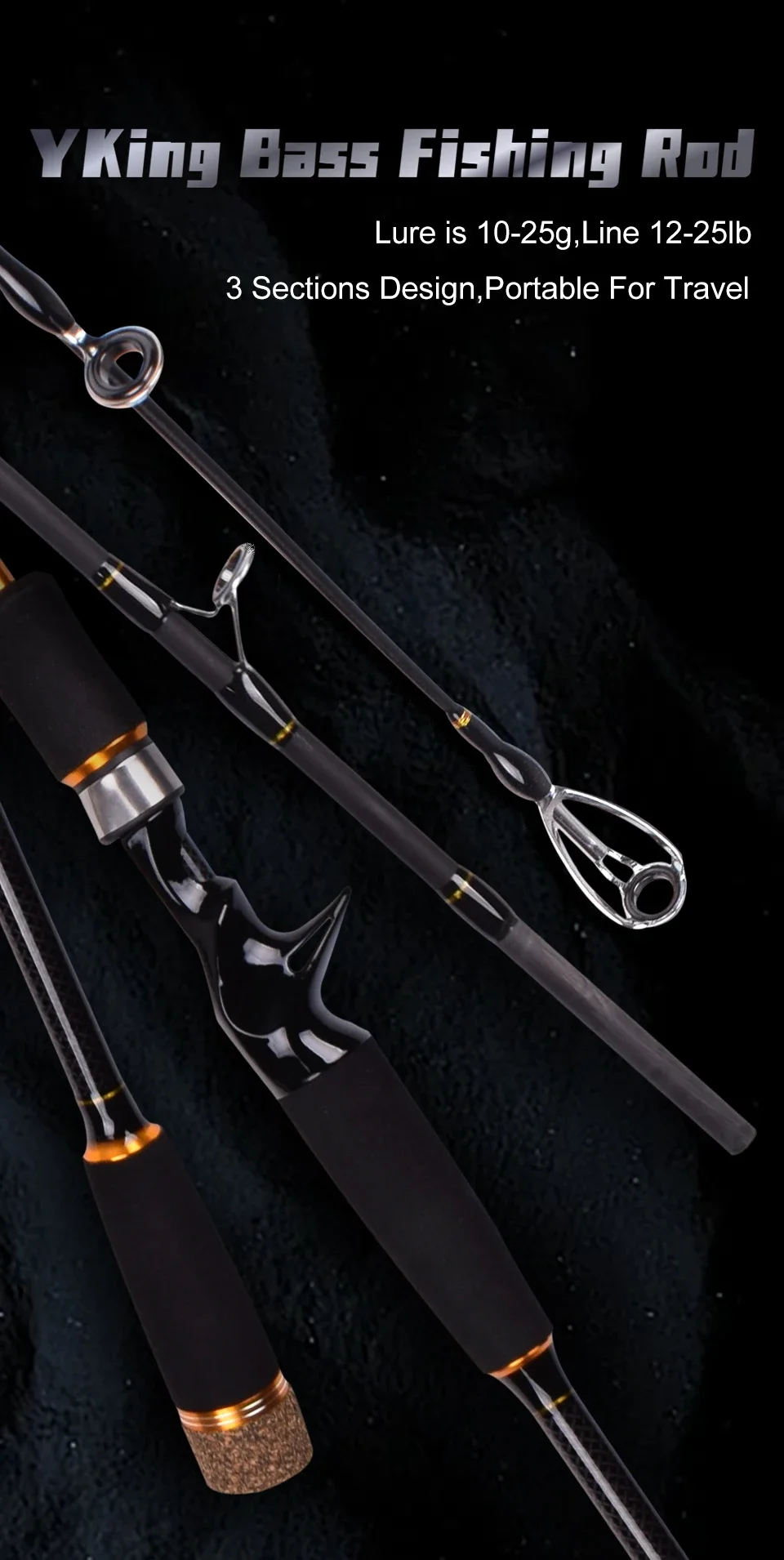 Mavllos YKing Bass Fishing Spinning Rod Lure 10-25g Line 12-25lb 3 Sections Portable Light Carbon Perch Casting Fishing Rod