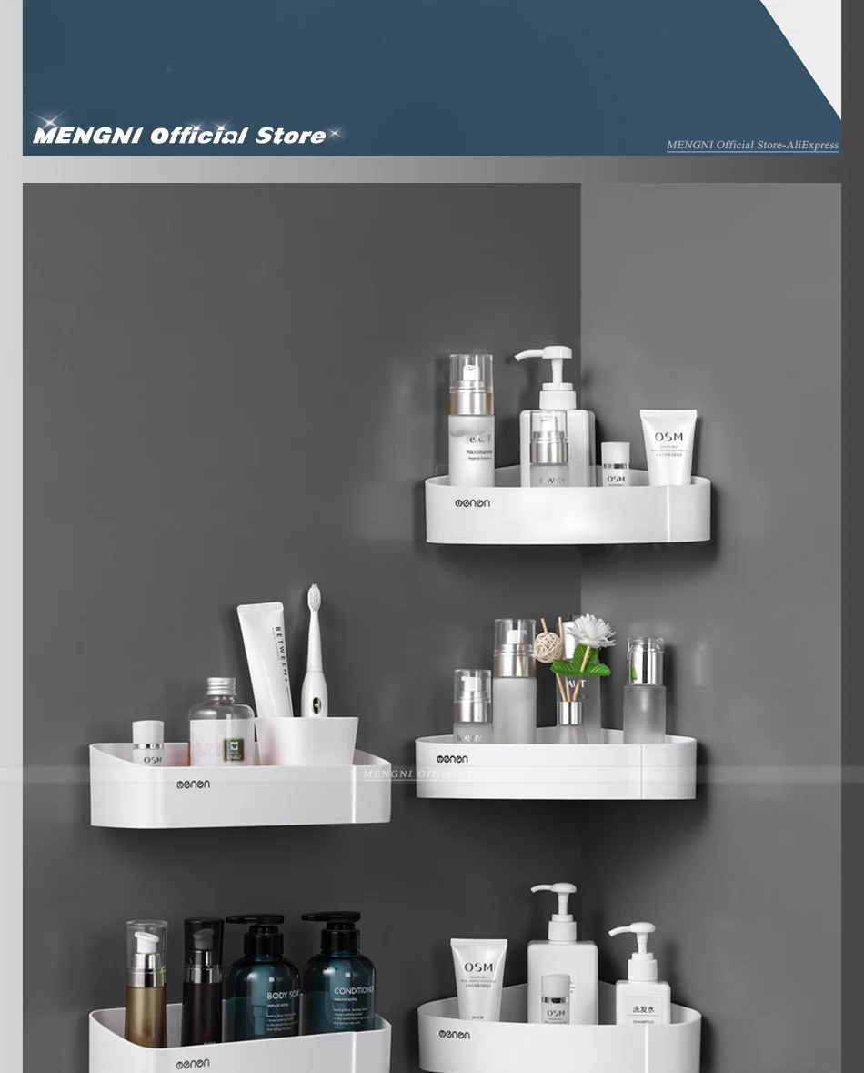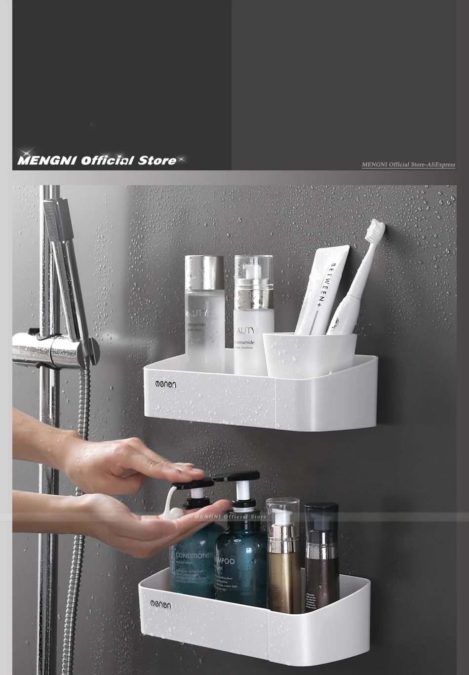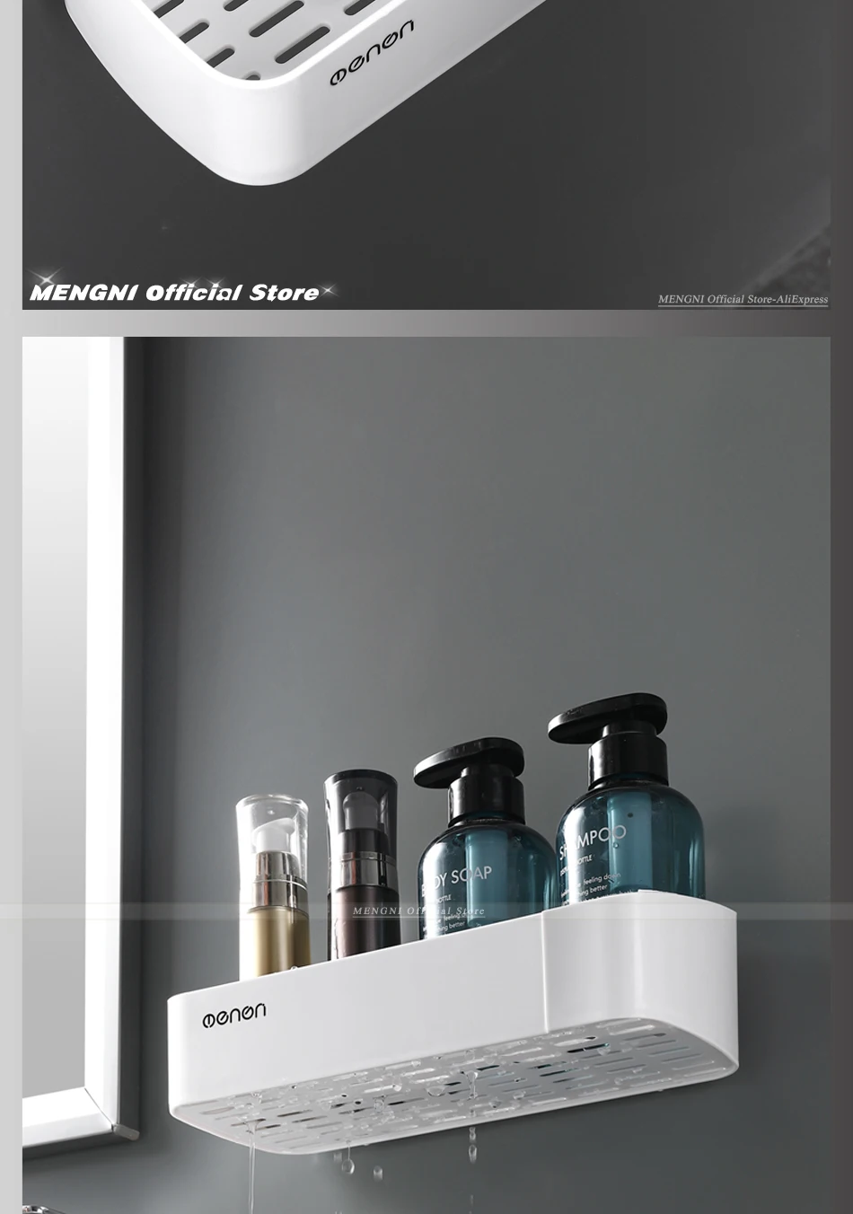 MENGNI-Waterproof Wall-mounted Plastic Storage Shelf Shower Product Holder Kitchen Storage rack Bathroom Accessories sets