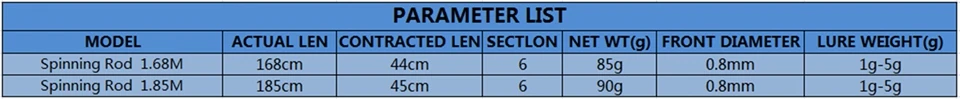 5. Guarantee the quality of the fishing rod, if you have any questions about the product, please feel free to send an email, we will reply you in time! For detailed parameters of the fishing rod, please refer to the product description.