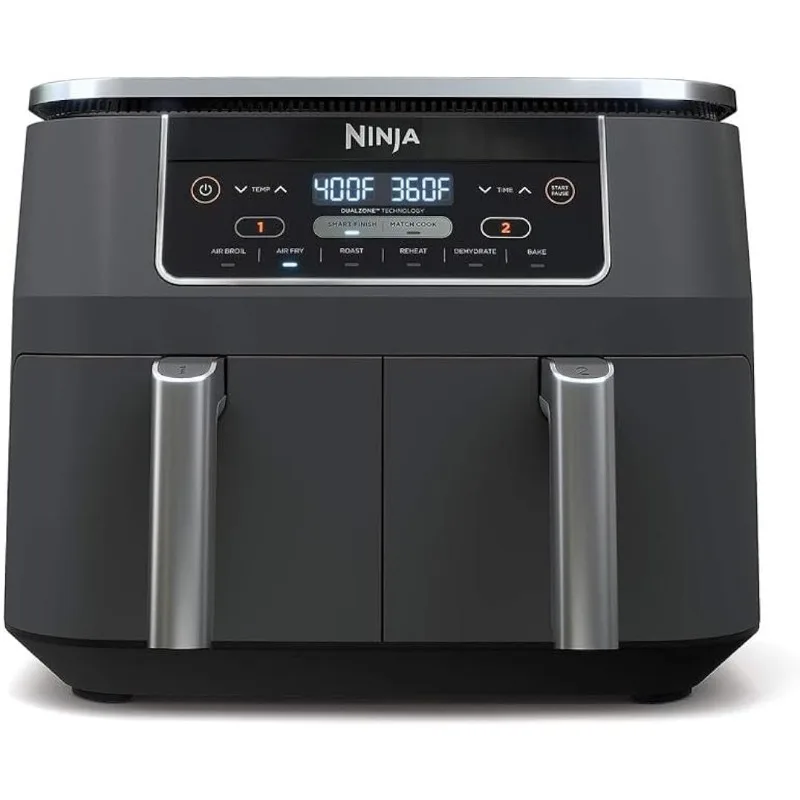 Ninja DZ201 Foodi 8 Quart 6-in-1 DualZone 2-Basket Air Fryer with 2 Independent Frying Baskets, Match Cook & Smart Finish