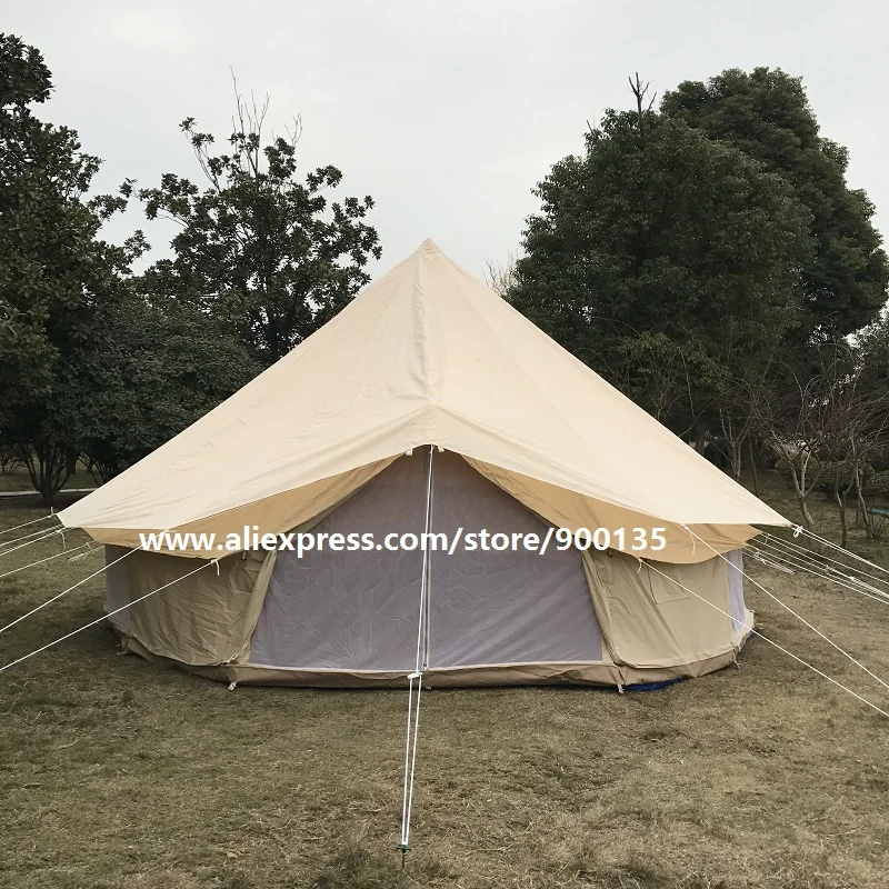 Outdoor Waterproof Luxury 4M Cotton Canvas Bell Tent With Stove Hole For 3-5 Persons Traveling Hotle Glamping