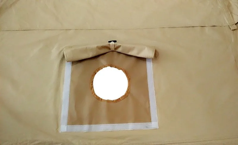 Our bell tent comes with 10cm (3.9in) chimney hole on the side wall and are capable to equip with stove inside. The hole can be covered by canvas with velcro sealed when you don't use it. So it achieve both ideal of "beauty and practicality".