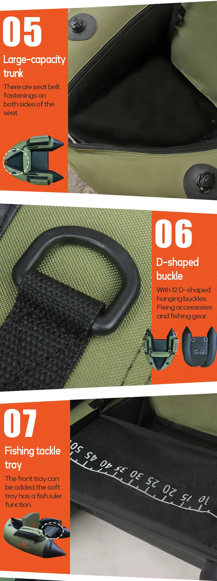 The whole ship is equipped with 12 D-shaped hanging buckles, which is convenient for fixing accessories and fishing gear.
