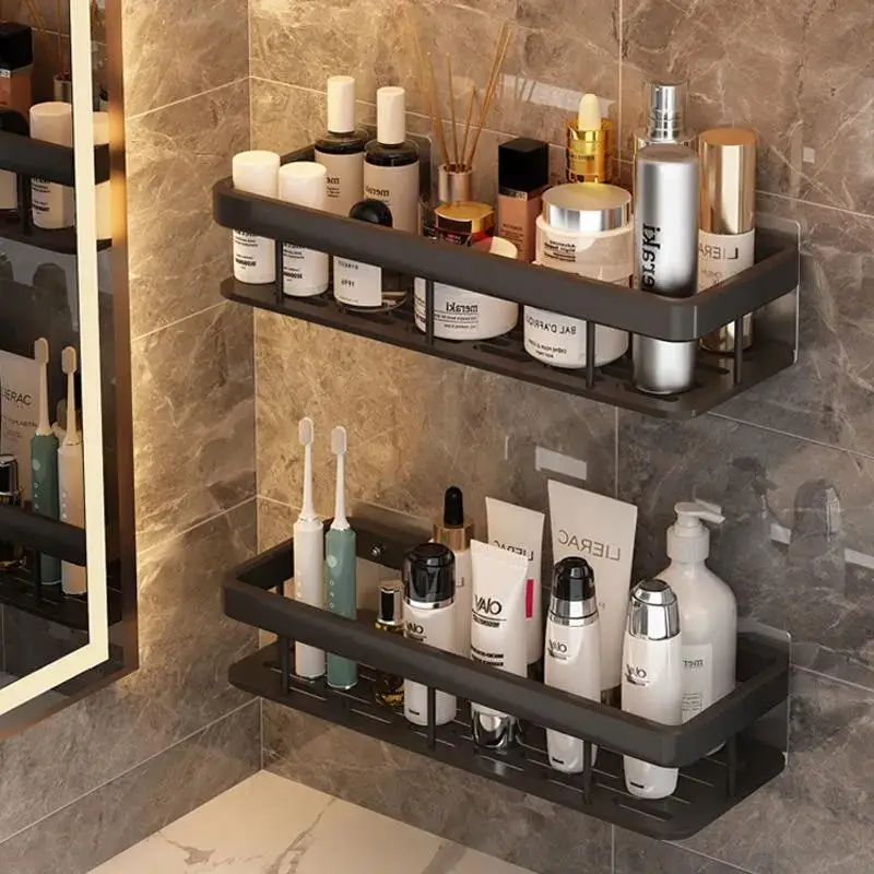 Punch-free Bathroom Shelf Shelves Wall Mounted Shampoo Storage Rack For Kitchen Holder Square Aluminum Bath Organizer Accessorie