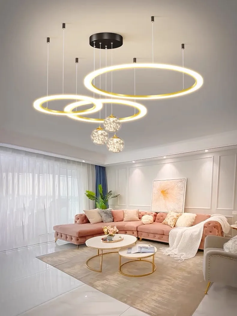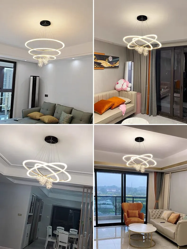 Remote Dimming Modern Chandeliers For Living Room Dining Bedroom Pendant Lamps Gypsophila Decor Lustre Round Rings Droppshiping
