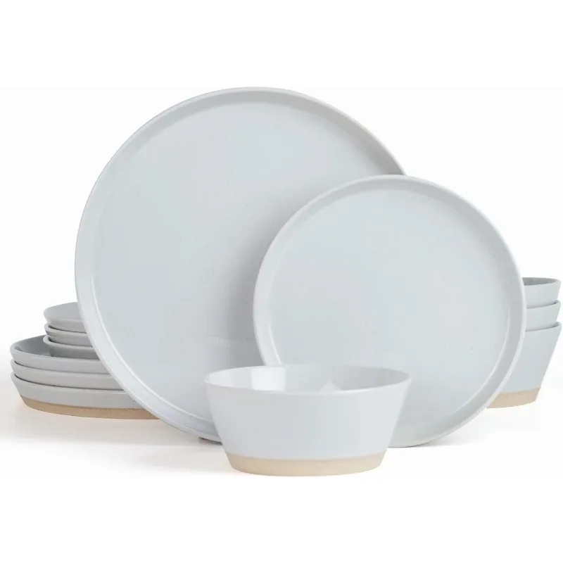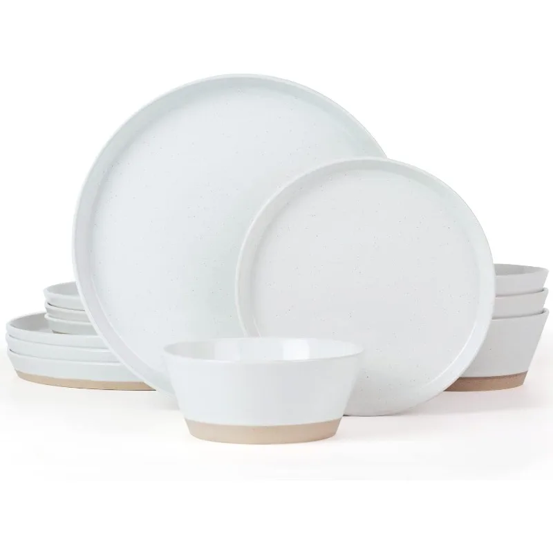 Saturn Dinnerware Sets, 12 Piece Dish Set, Plates and Bowls Sets for 4, White